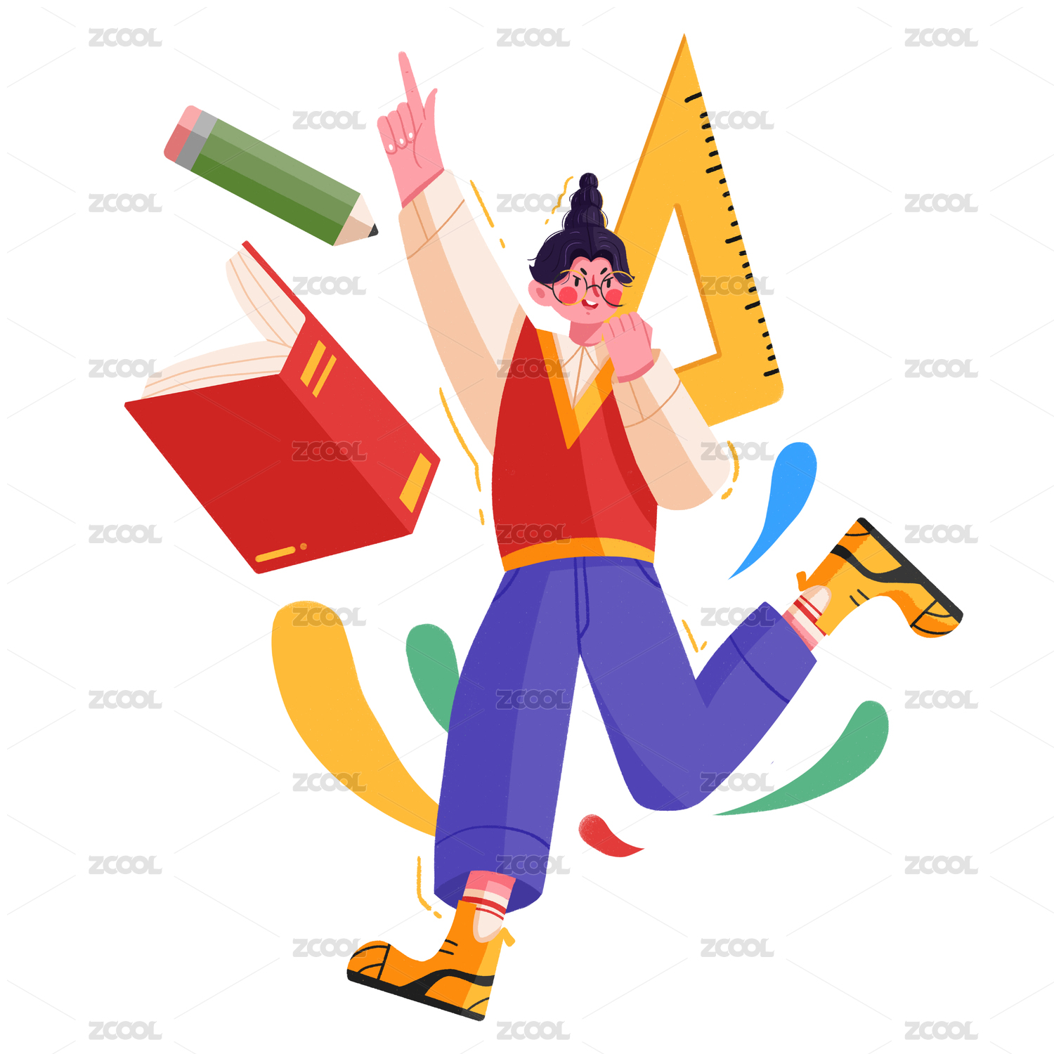 卡通手绘开学季教育学习插画