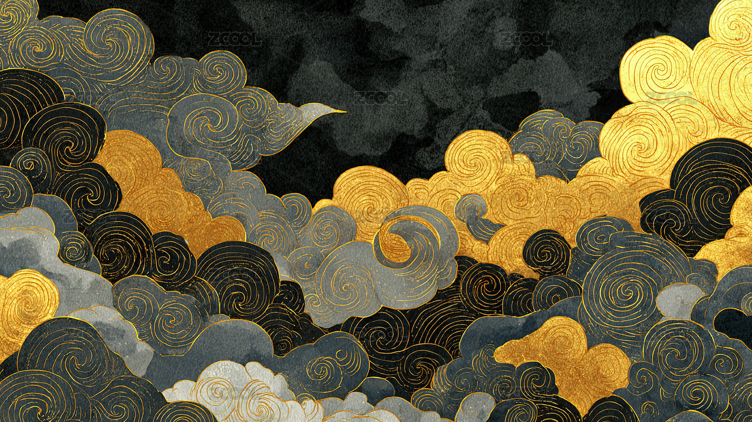 古典中国风祥云纹理金色图案节日庆典装饰