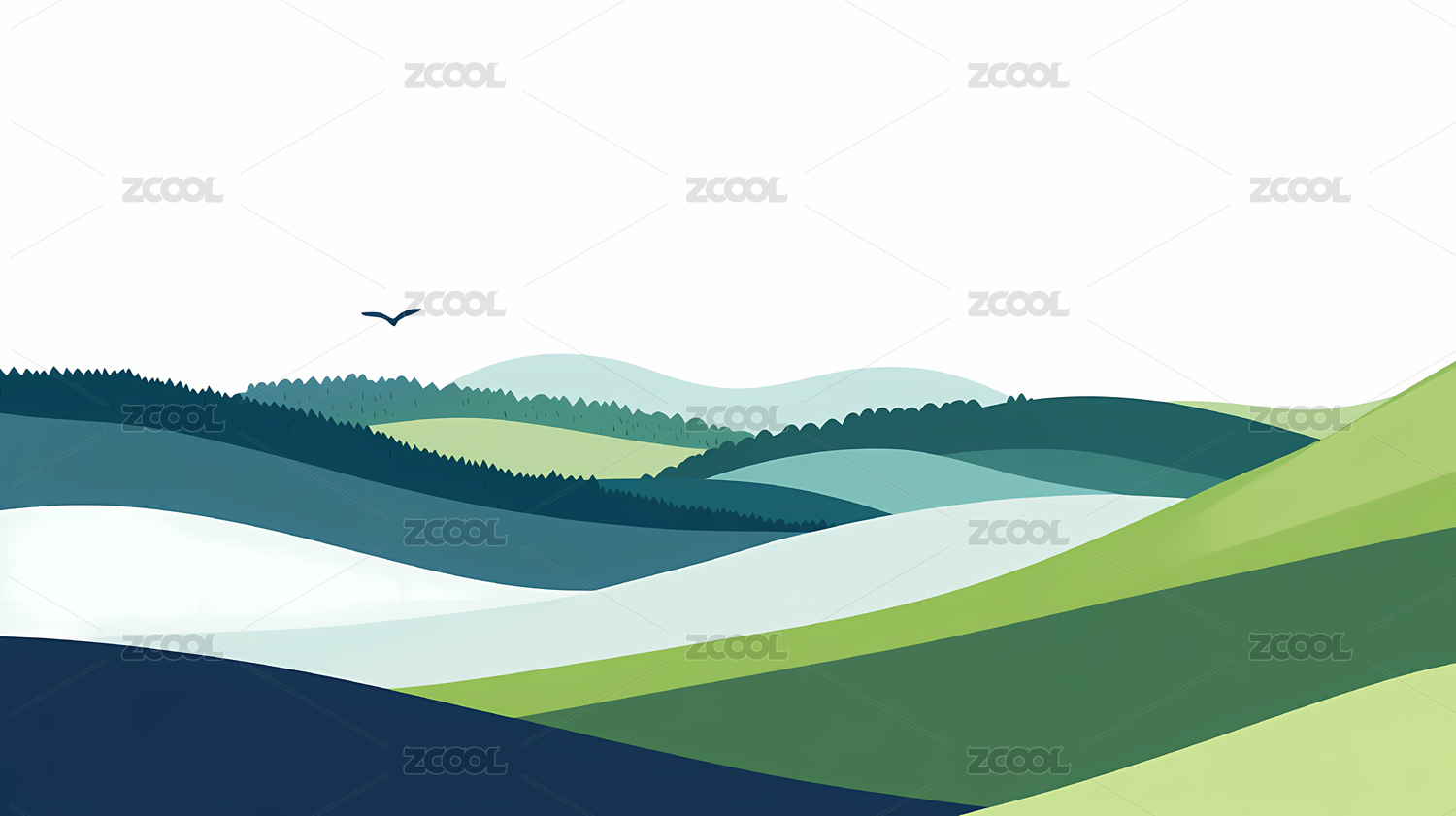 蓝天白云绿色草地湖泊卡通动漫背景插画壁纸
