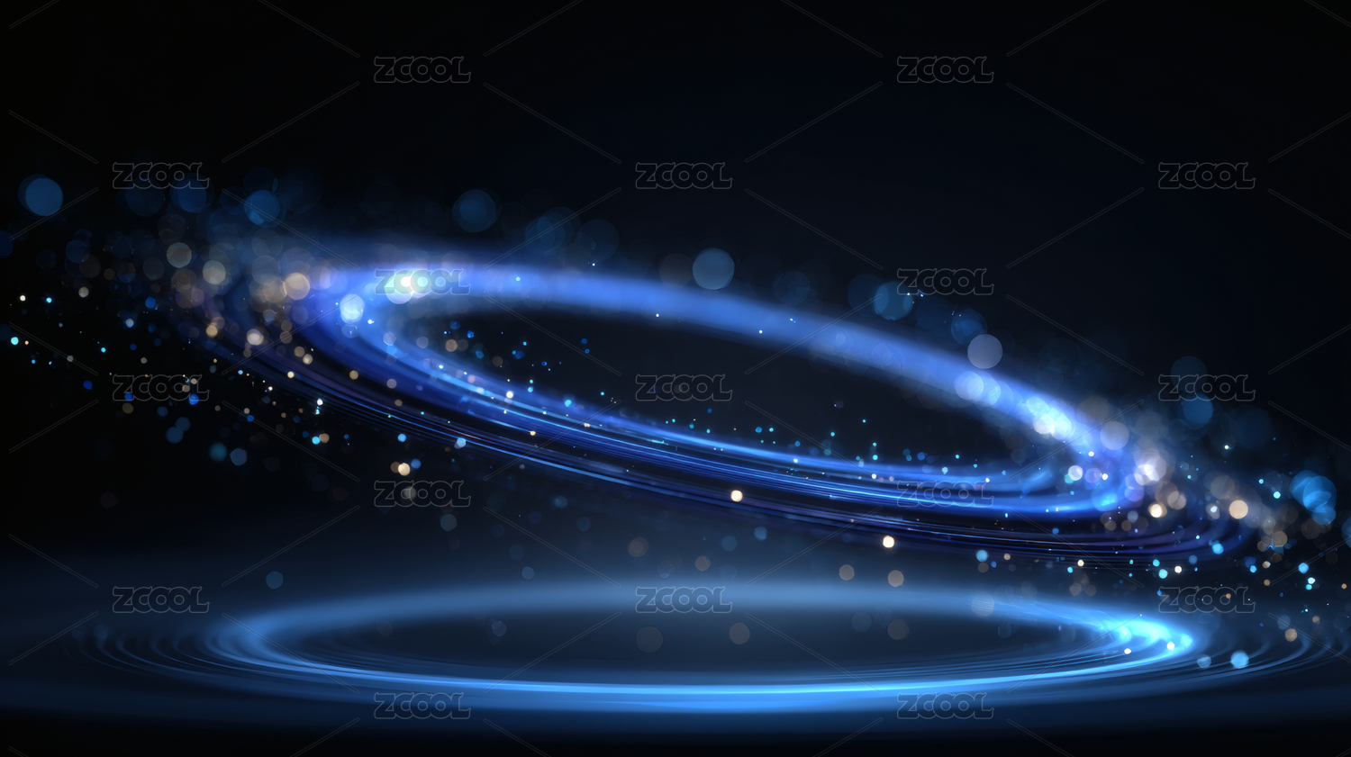 蓝白环形粒子的科技梦幻场景图