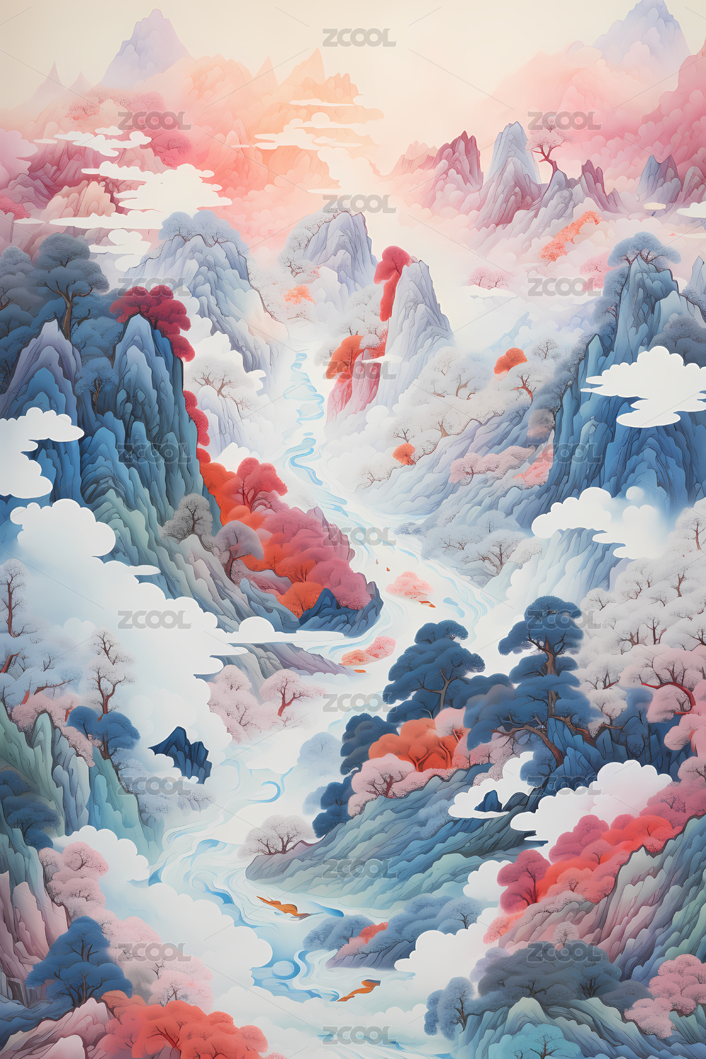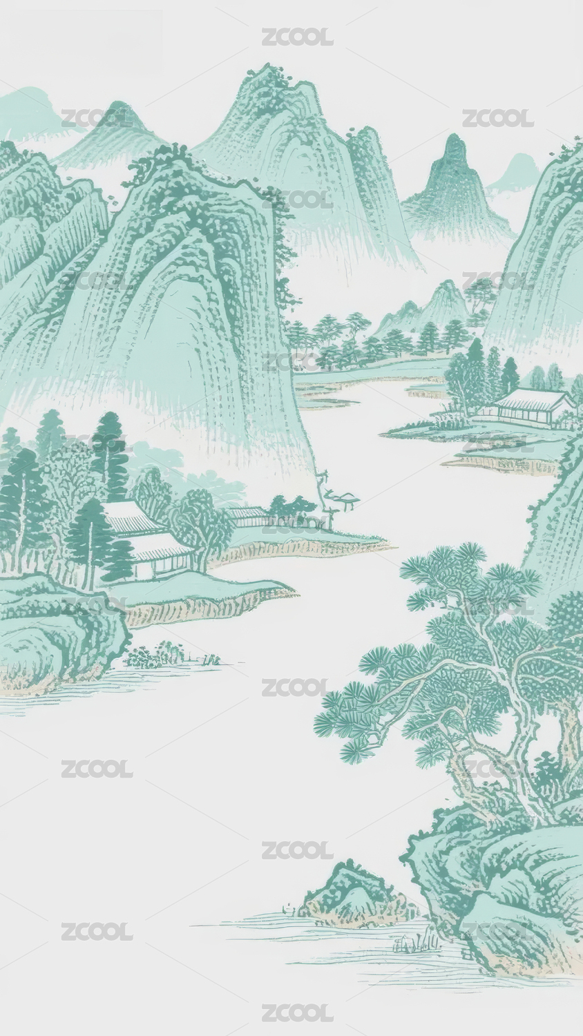 青绿山水画:峰峦叠嶂云雾缭绕仙气飘飘