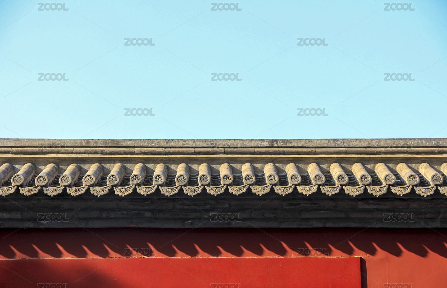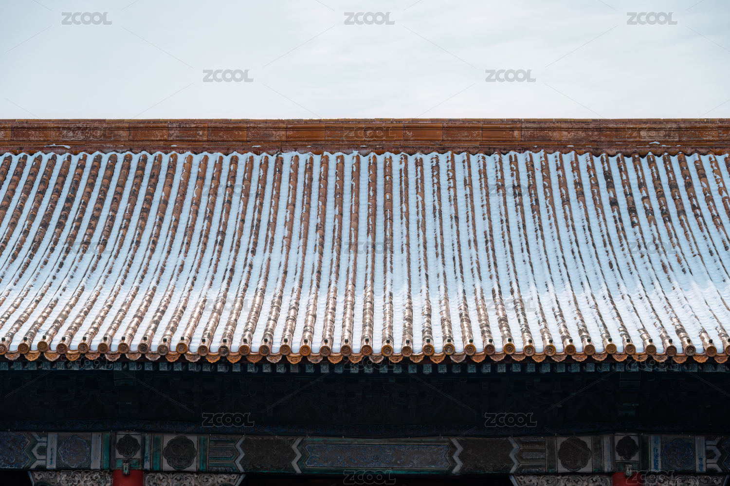 冬季雪后北京故宫宫殿屋檐上的积雪