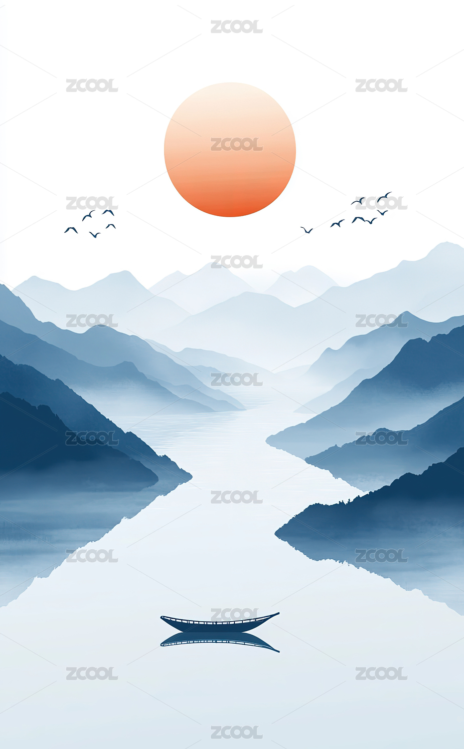 自然,高山,插画,风景,背景,地形,中国文化,国风,水墨画,写意画