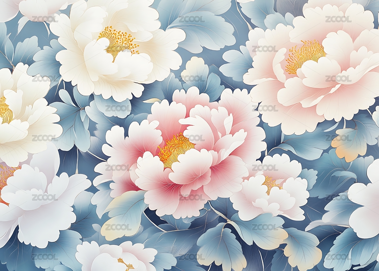 花卉,花朵,芍药,牡丹,叶子,印刷,手绘,高雅,高档,大牌