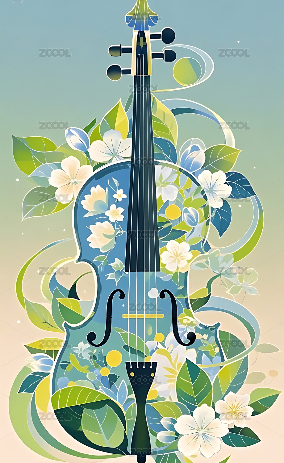 大提琴,水彩画,抽象画,艺术,乐器,音乐,色彩,线条,几何,形状