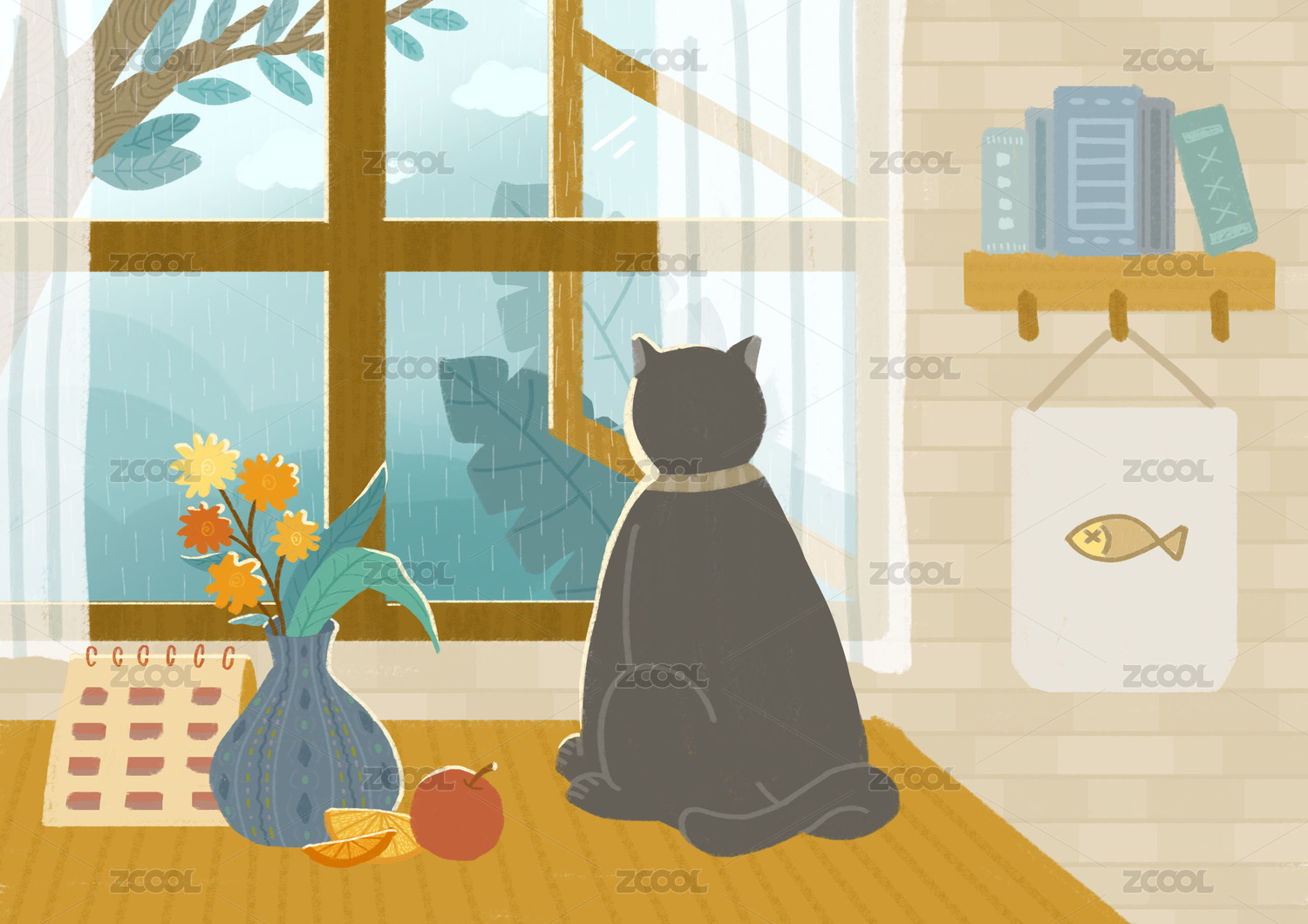 猫咪宠物居家矢量插画