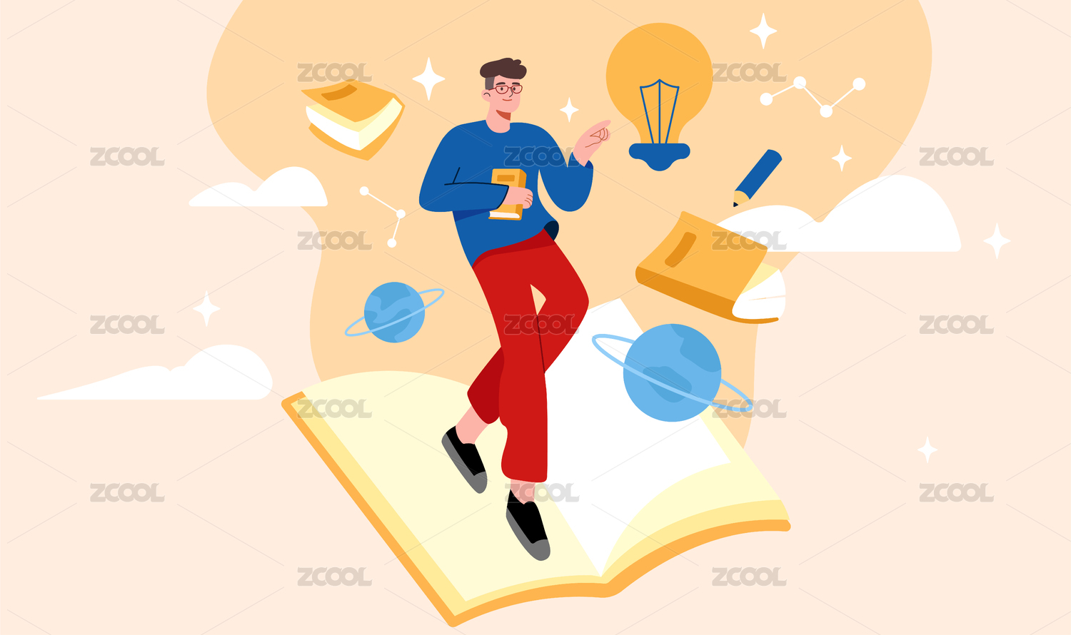 卡通手绘读书补习教育世界读书日插画