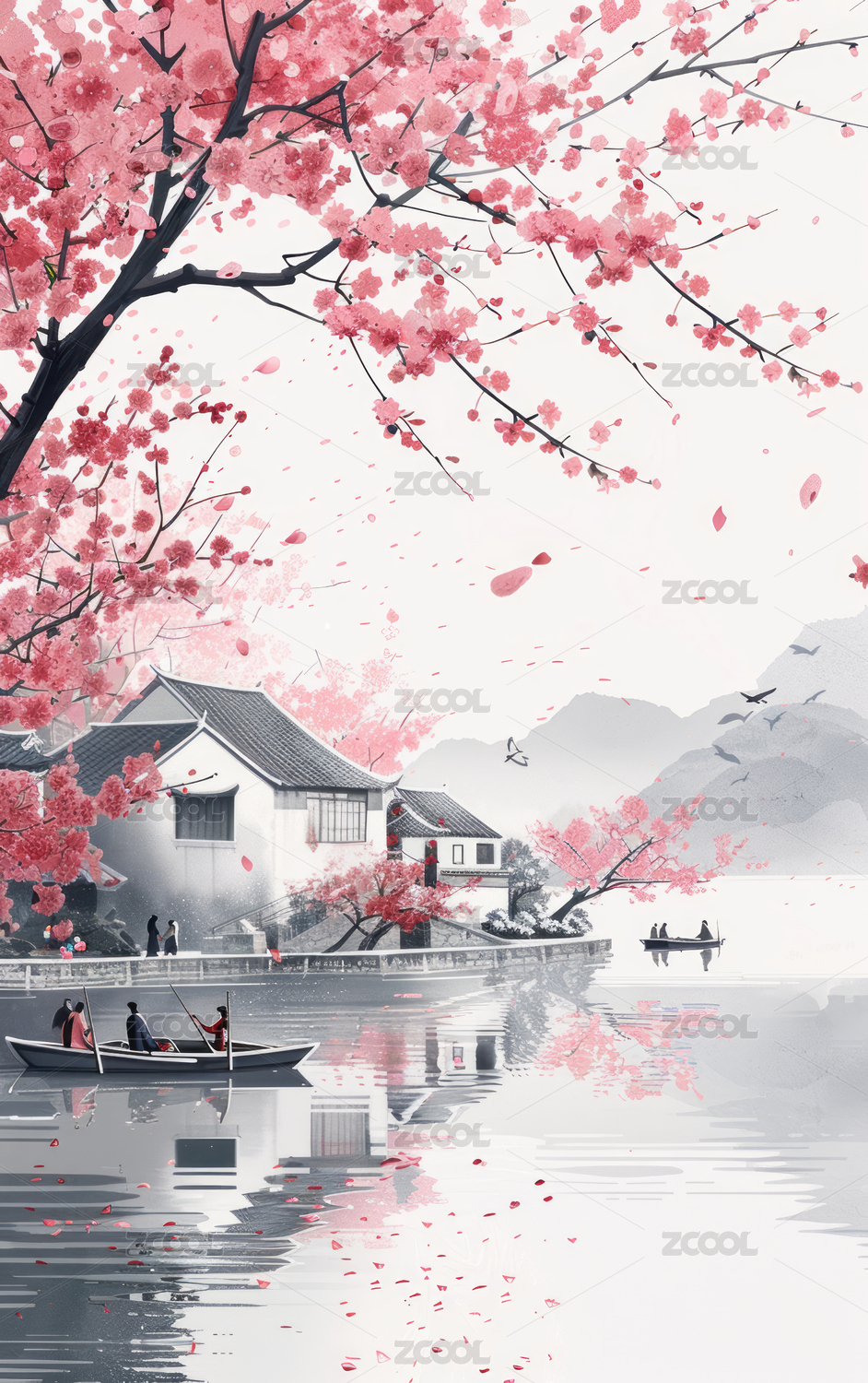 高山,天空,风景,户外,自然,建筑,宁静,AI数字艺术,建筑外部,树