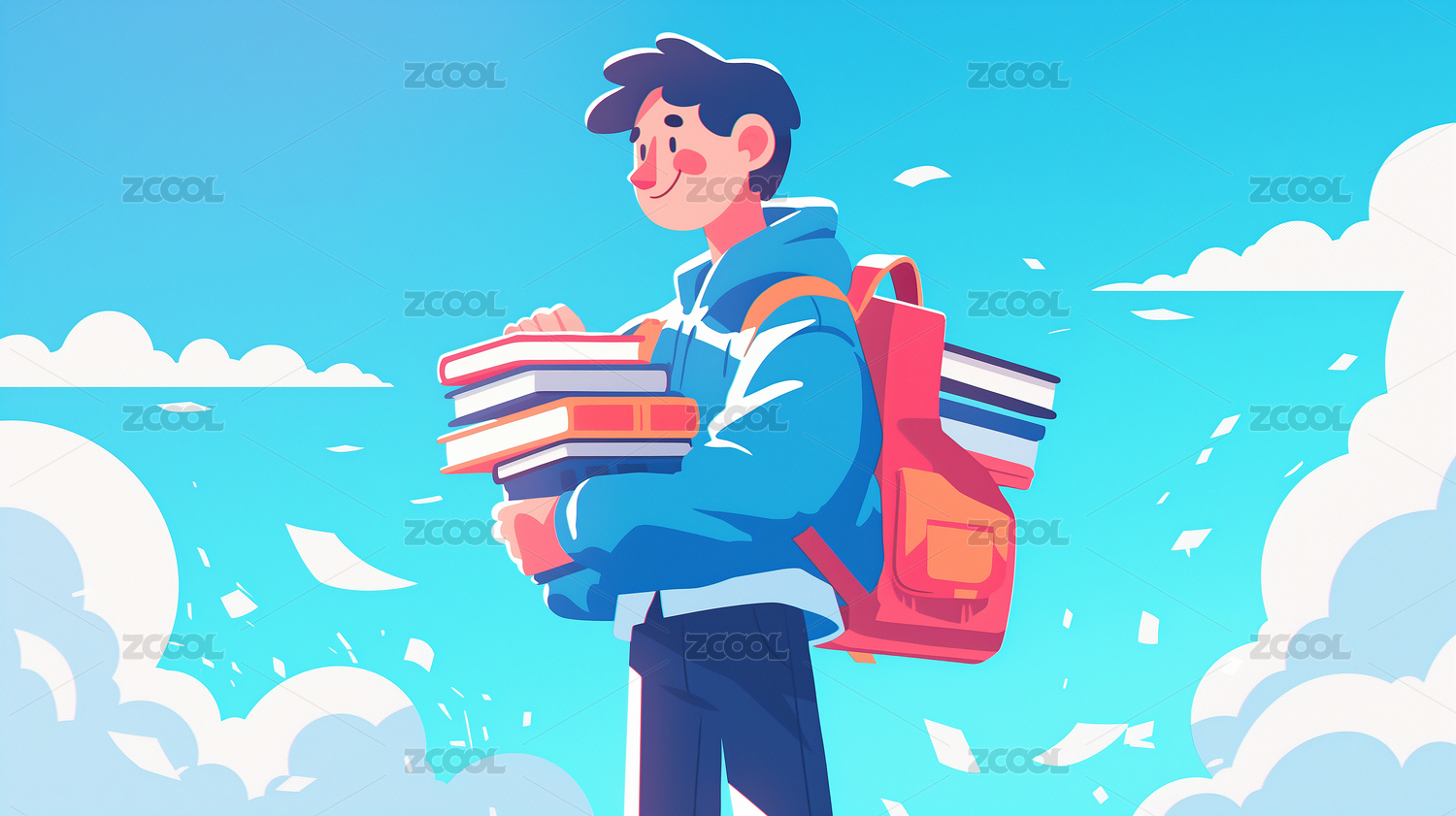 学生书本卡通创意插画