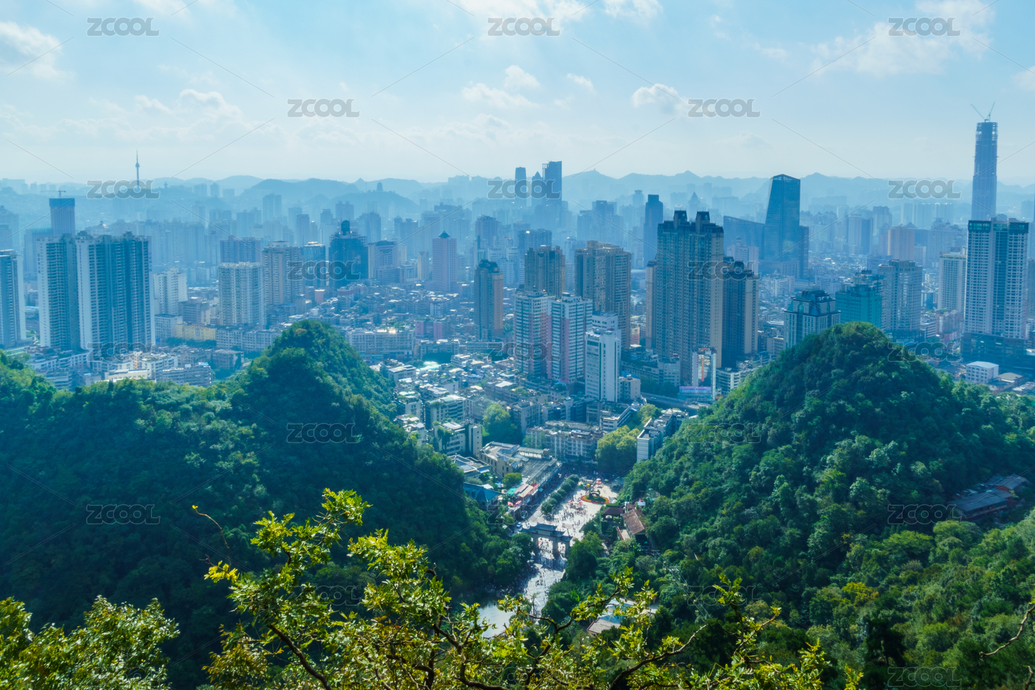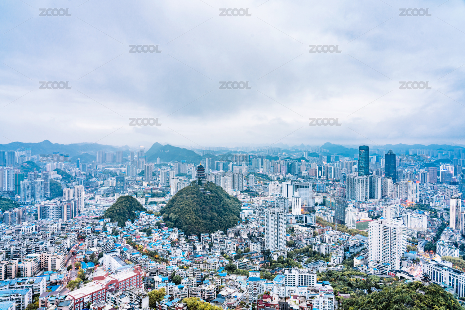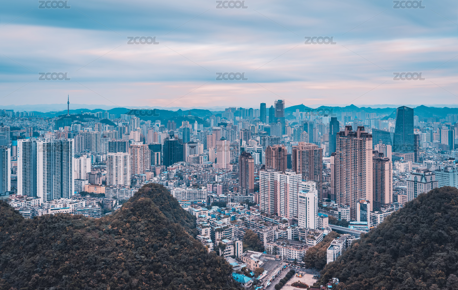 中国贵阳黔灵山俯瞰贵阳城市天际线风光