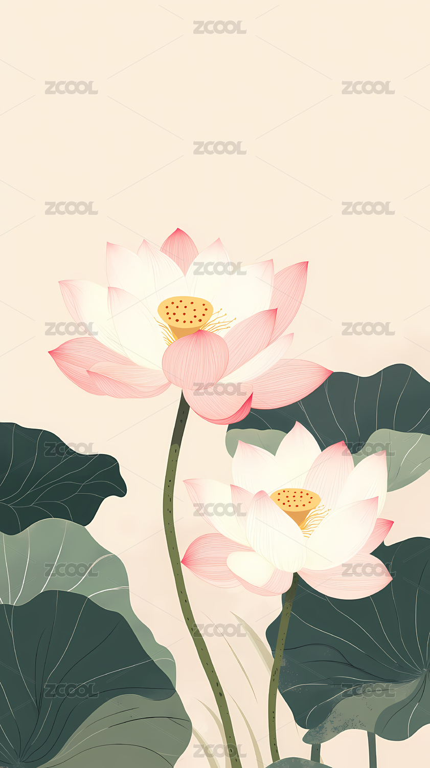 矢量中国风粉色荷花竖版插图