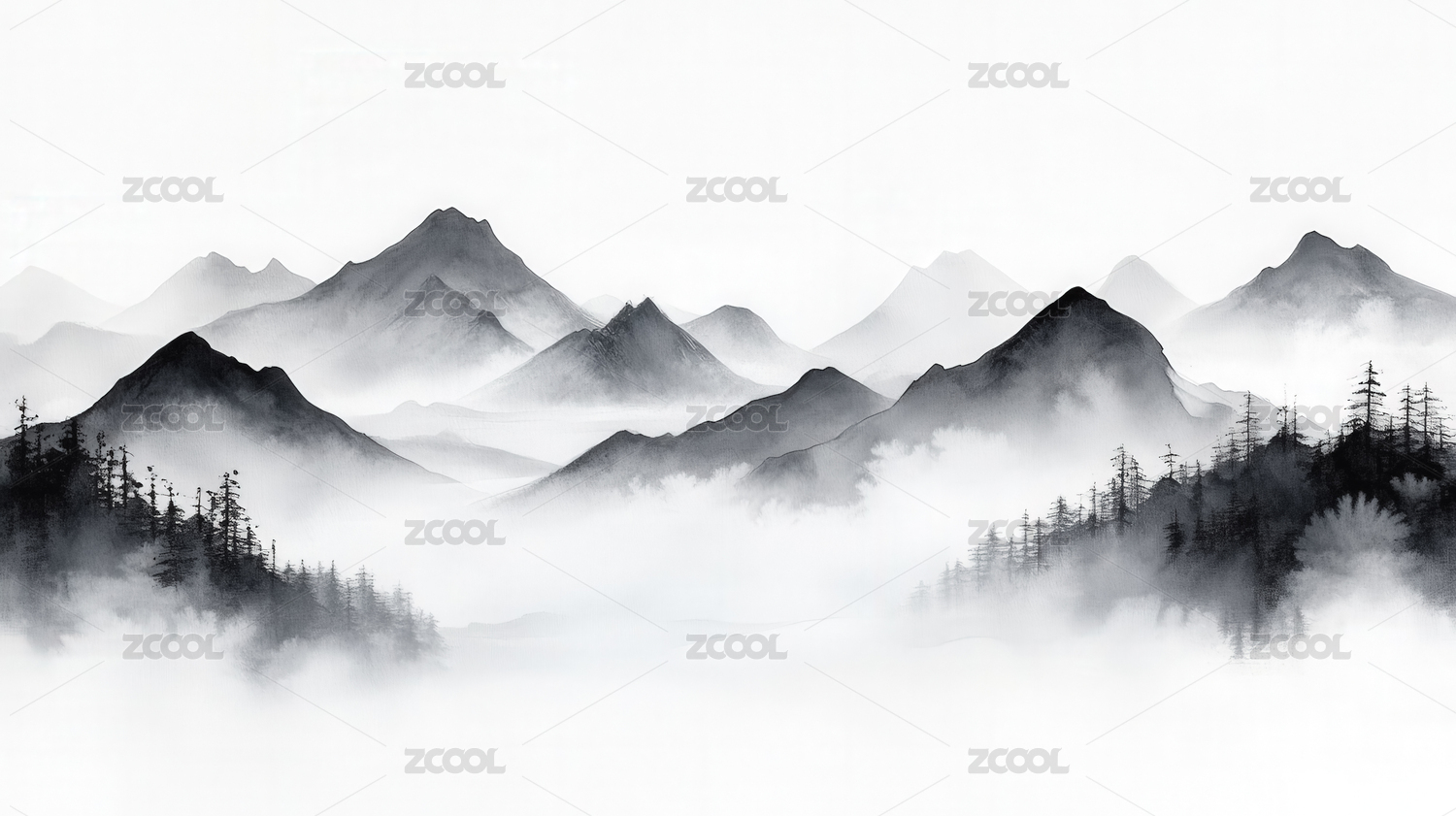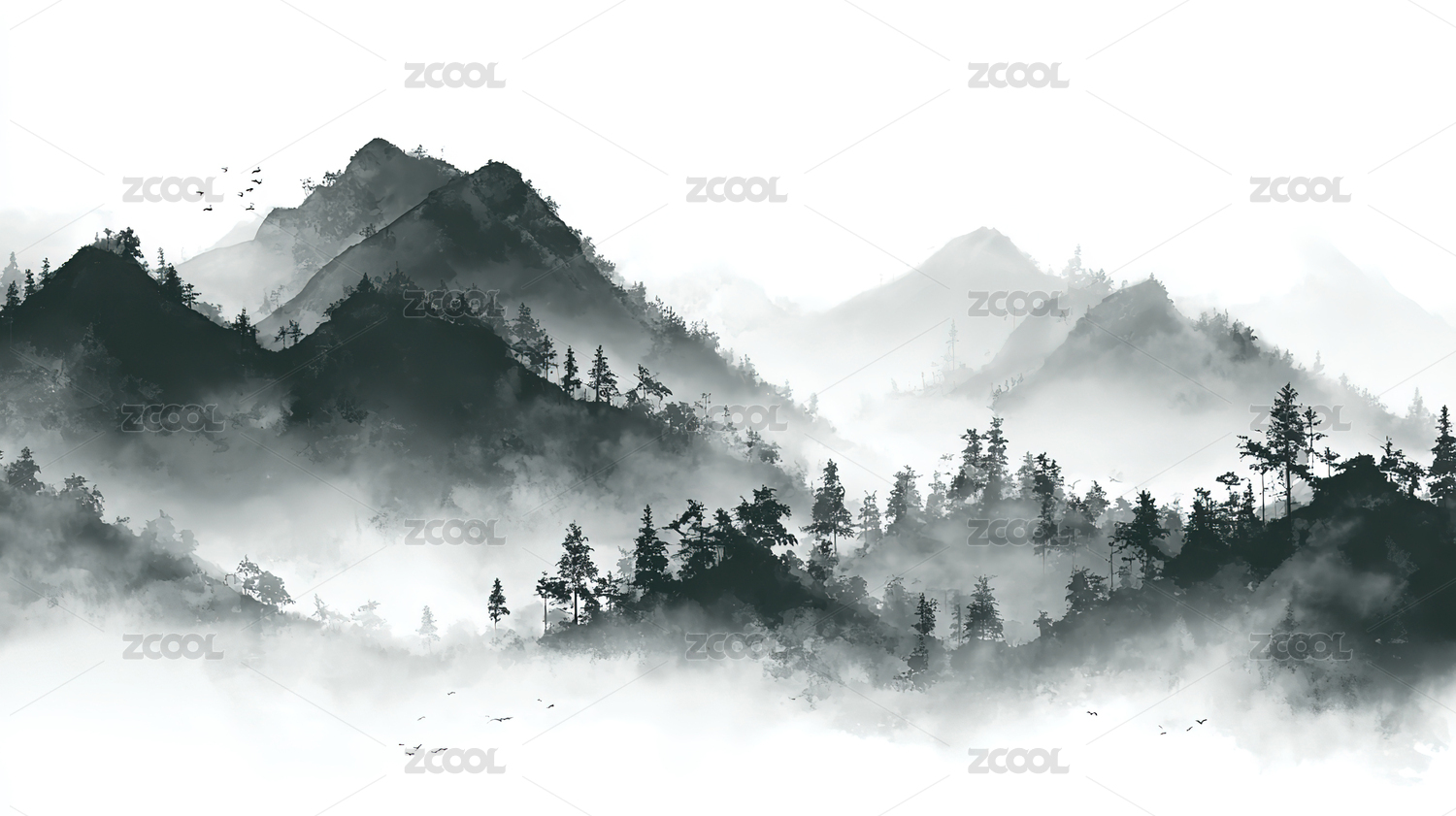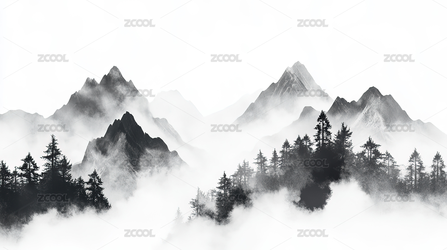清新,宁静,景色,祥和, 自然,朦胧,山峰, 山脉, 风景, 树木