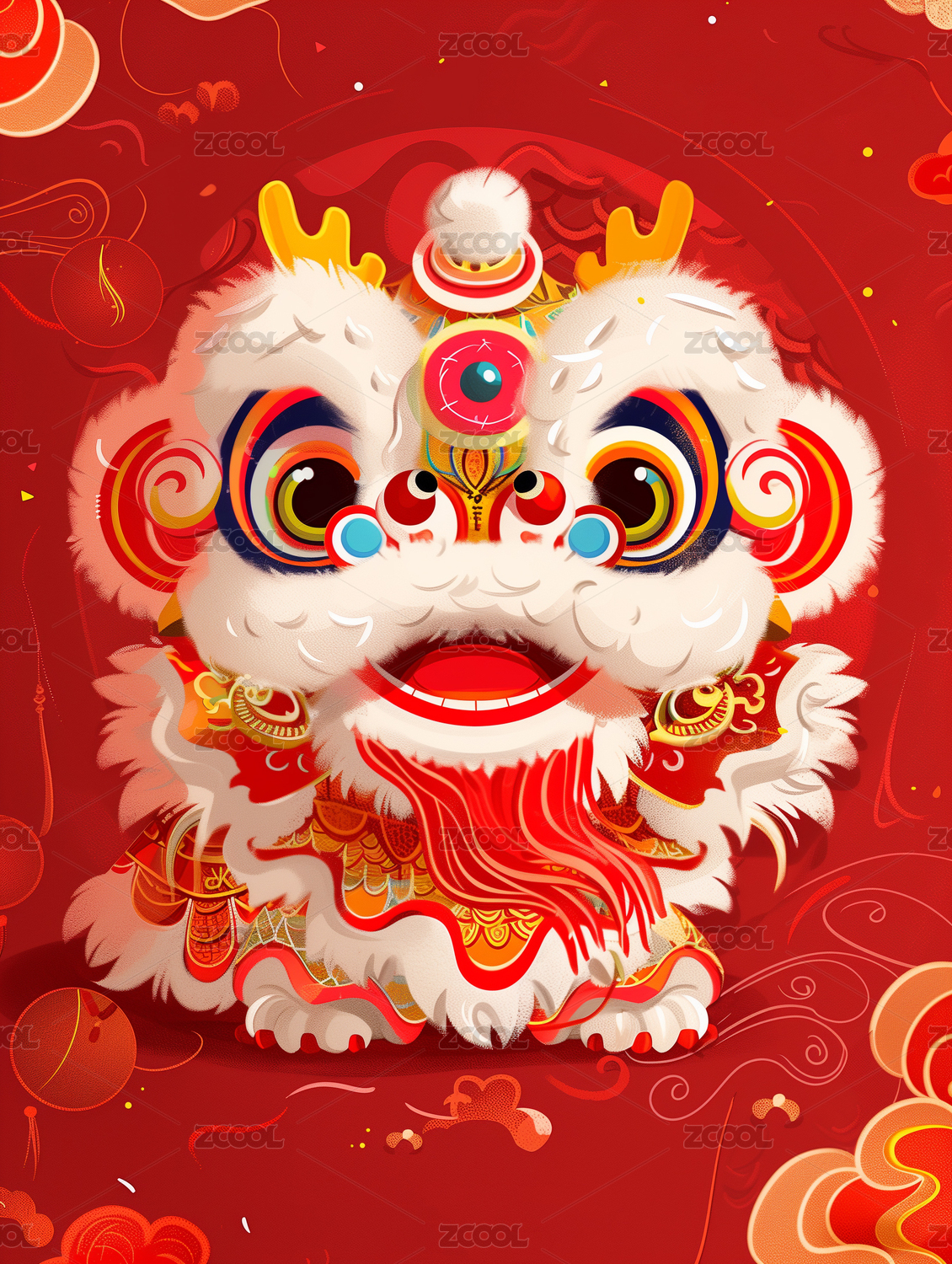 国潮,醒狮,生肖,新年,春节,喜庆,中国,中国风,挂件,装饰
