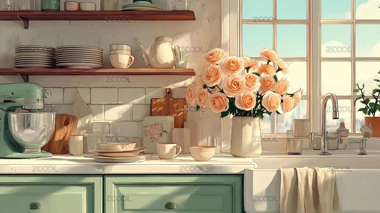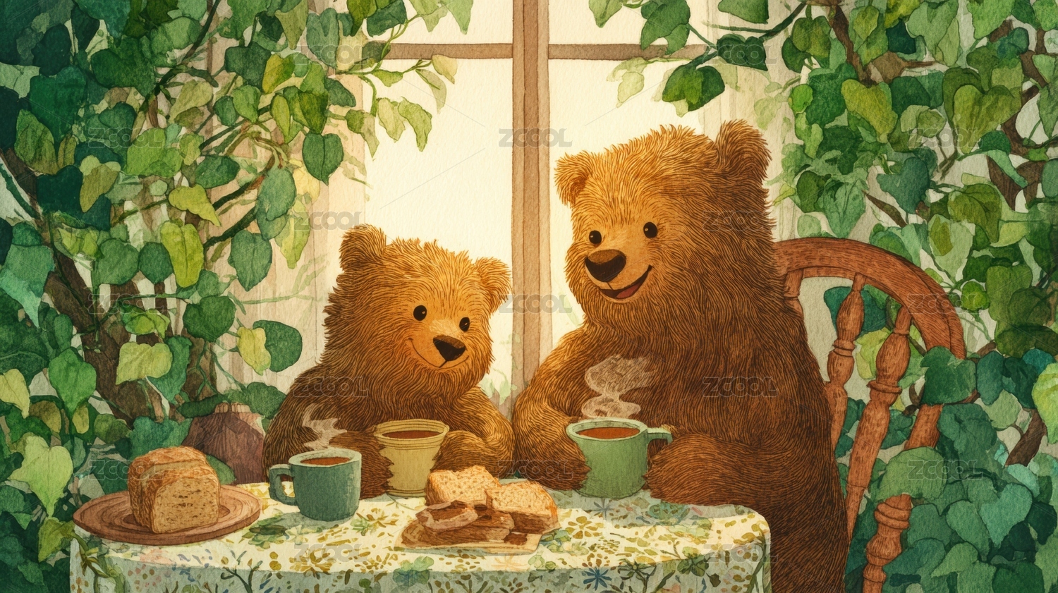熊,小熊,厨房,做饭,忙碌,窗,窗户,茶壶