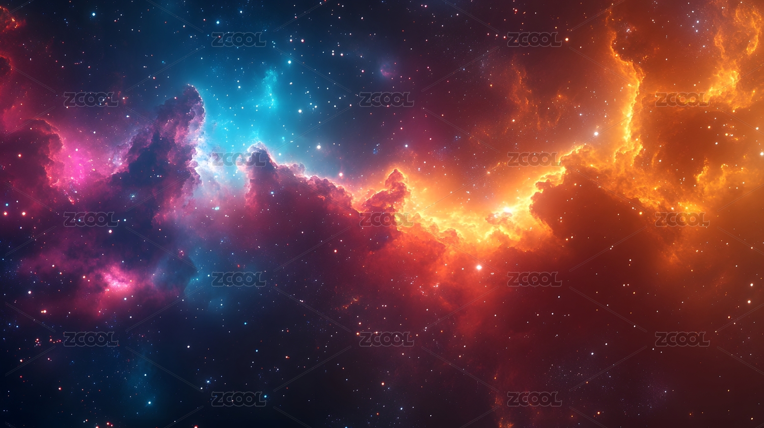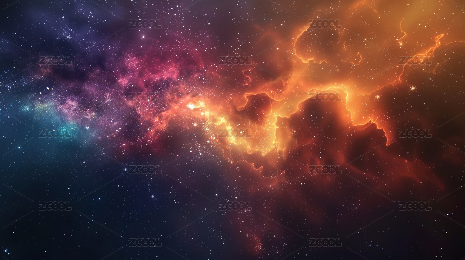 五颜六色的宇宙星云笼罩在太空尘埃中,天体