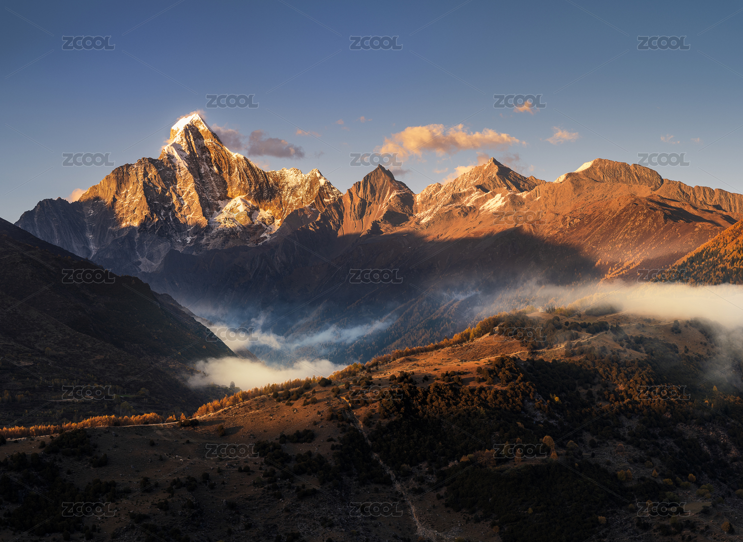 中国四川阿坝小金县四姑娘山夕阳下风光