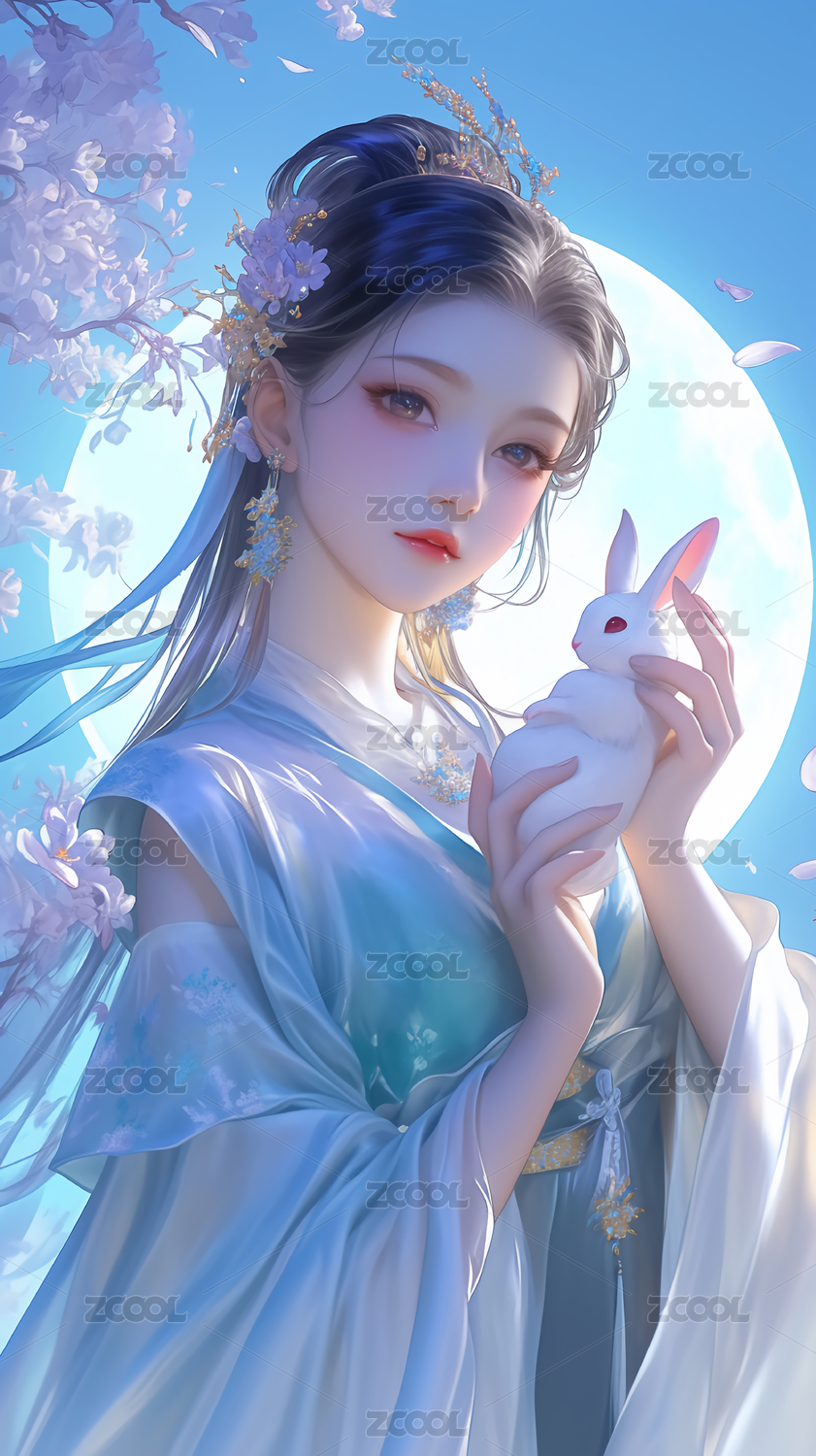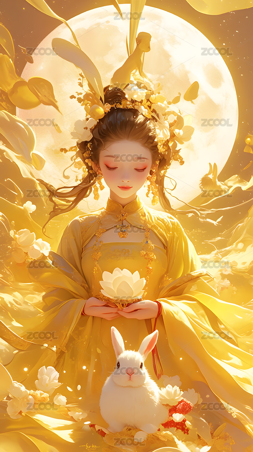 中秋节嫦娥抱着玉兔