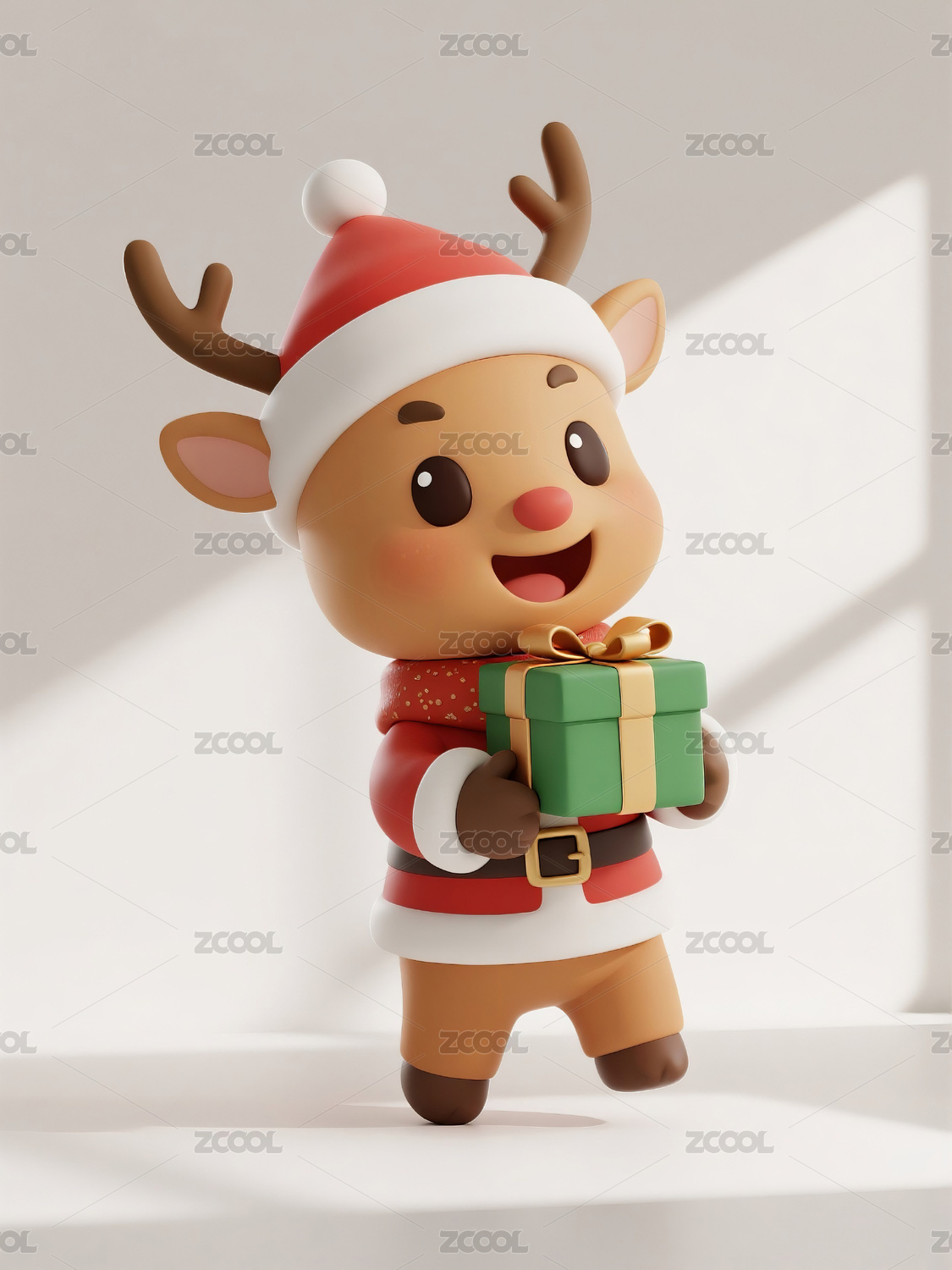 3D卡通麋鹿和圣诞礼盒