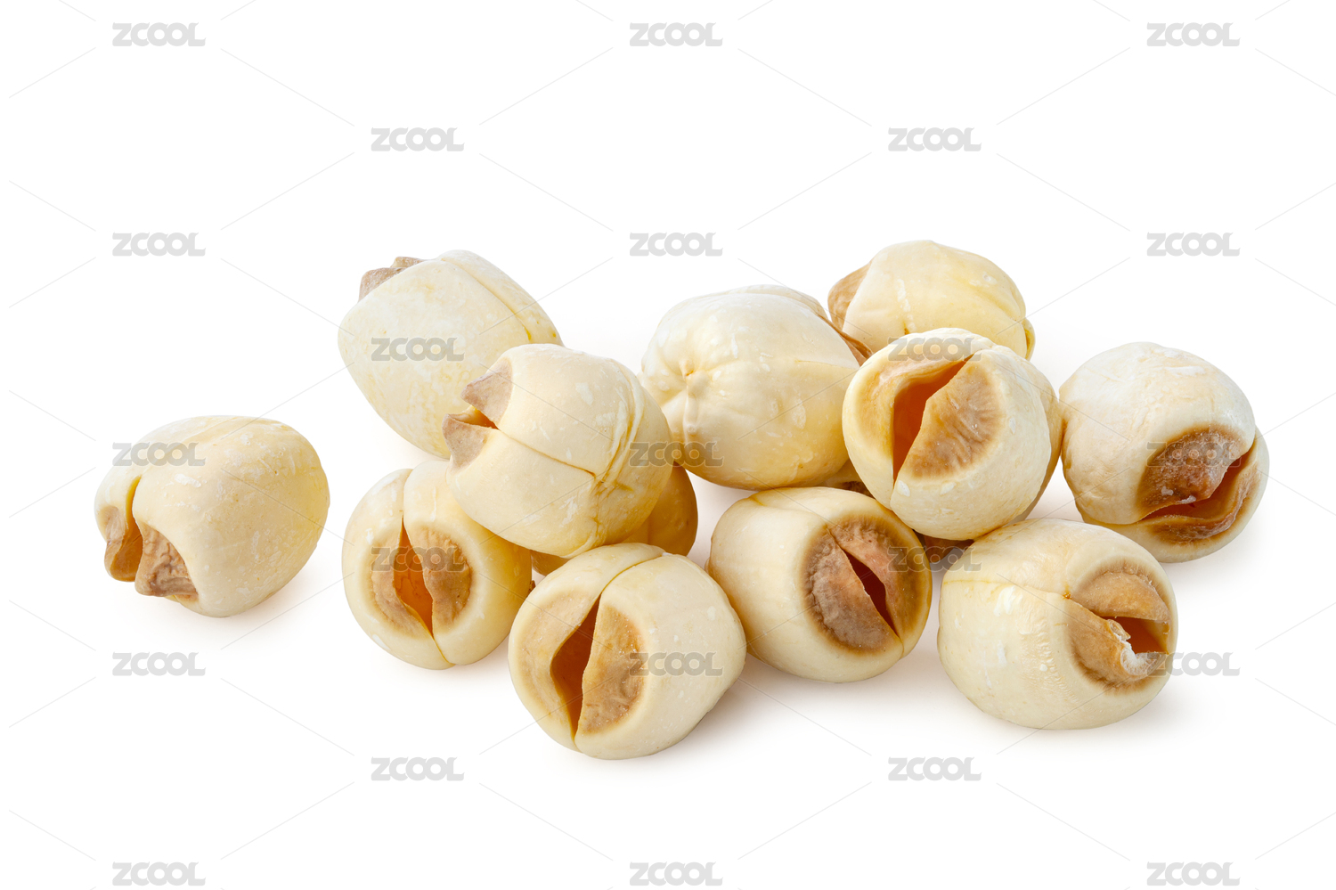 白色背景上的两颗莲子特写