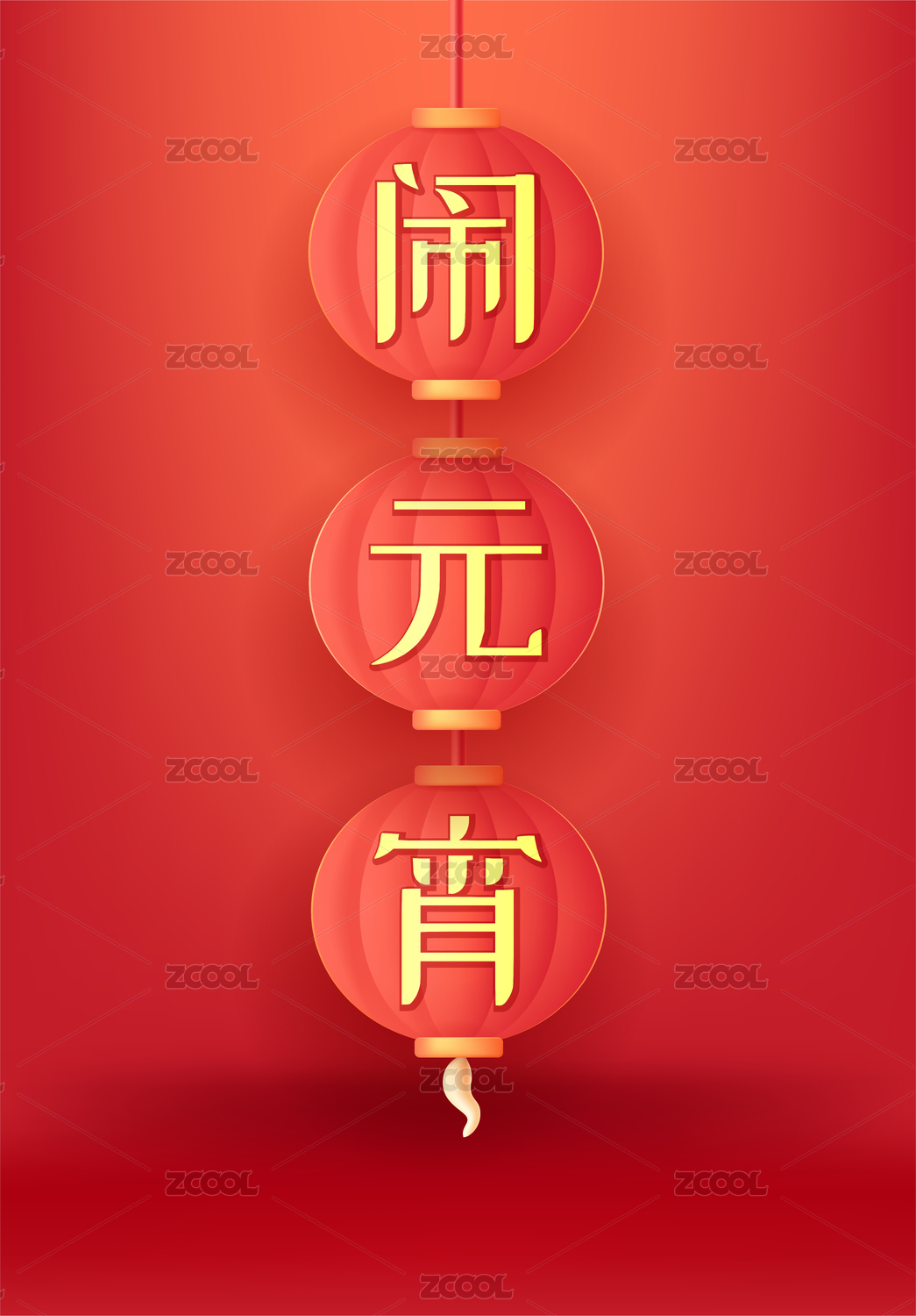元宵节灯笼红色中国风竖屏矢量插画