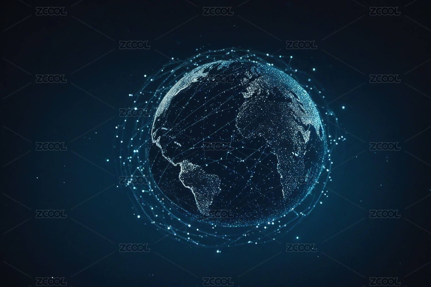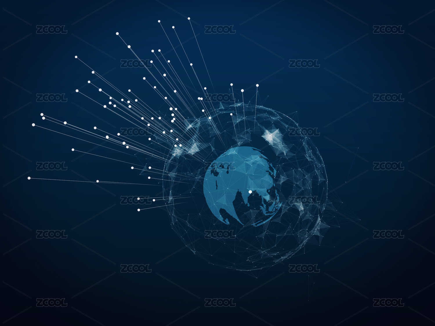 点和线连接组成的抽象地球,代表互联网、高科技,全球化、国际化,大数据科技背景图