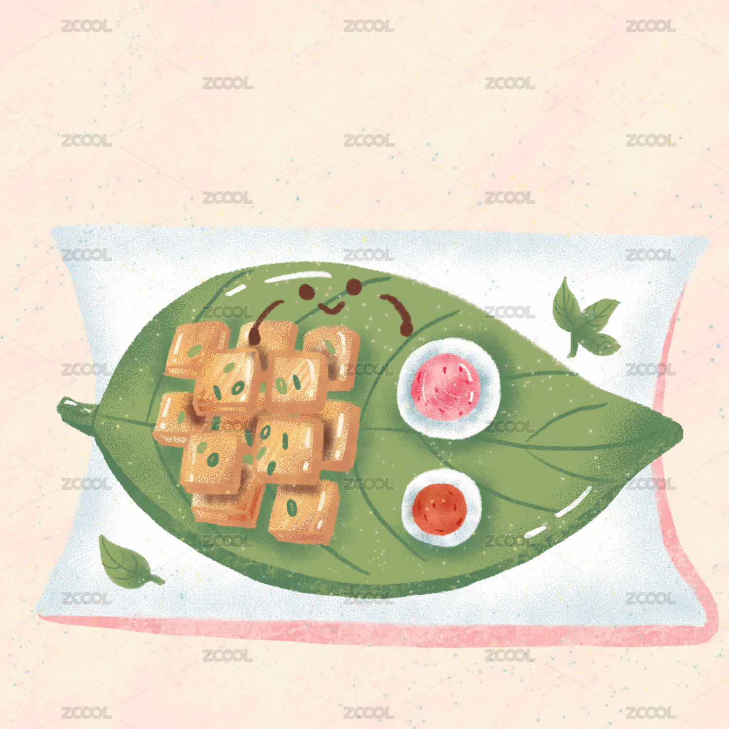 中国传统节日插画:端午节包粽子材料1