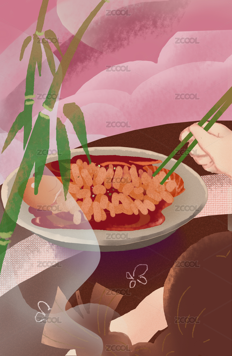 春天雨水传统节气美食小吃腌笃鲜笋插画