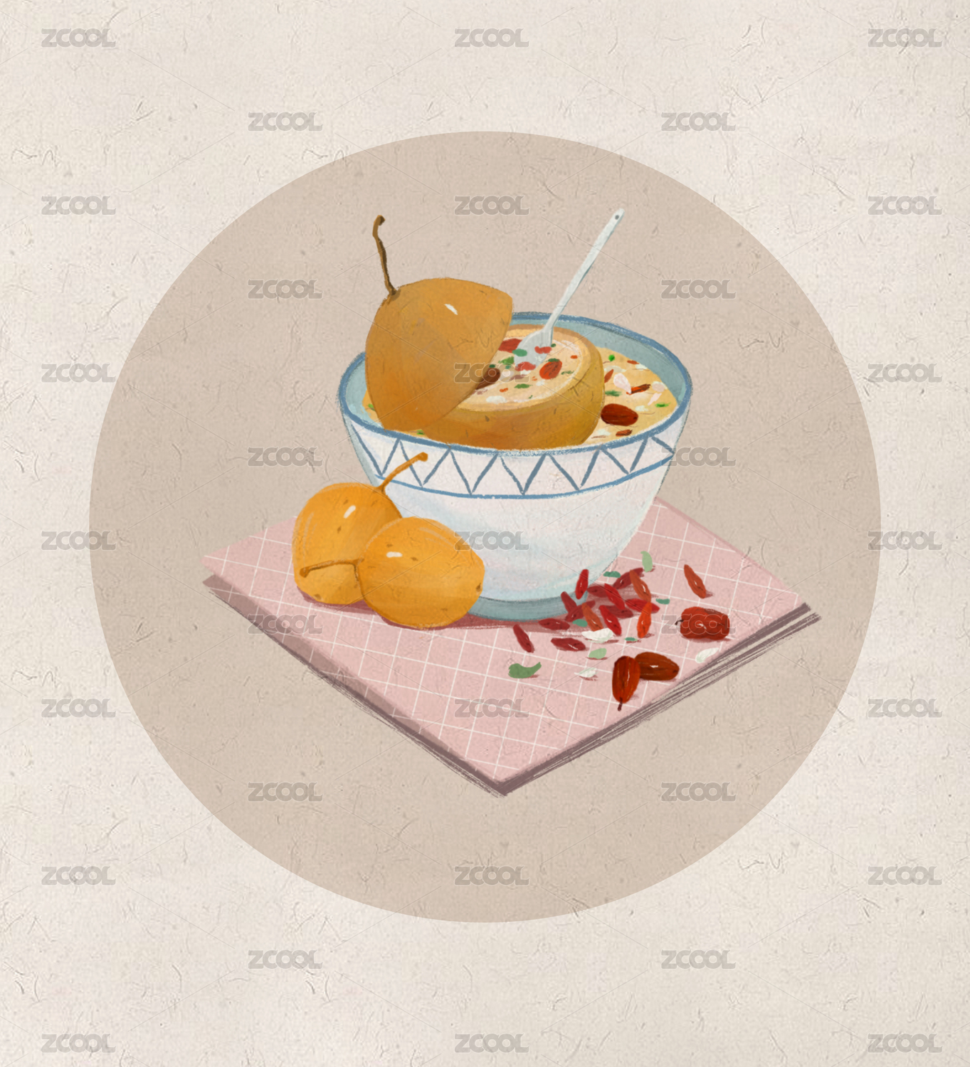 炖梨汤美食插画