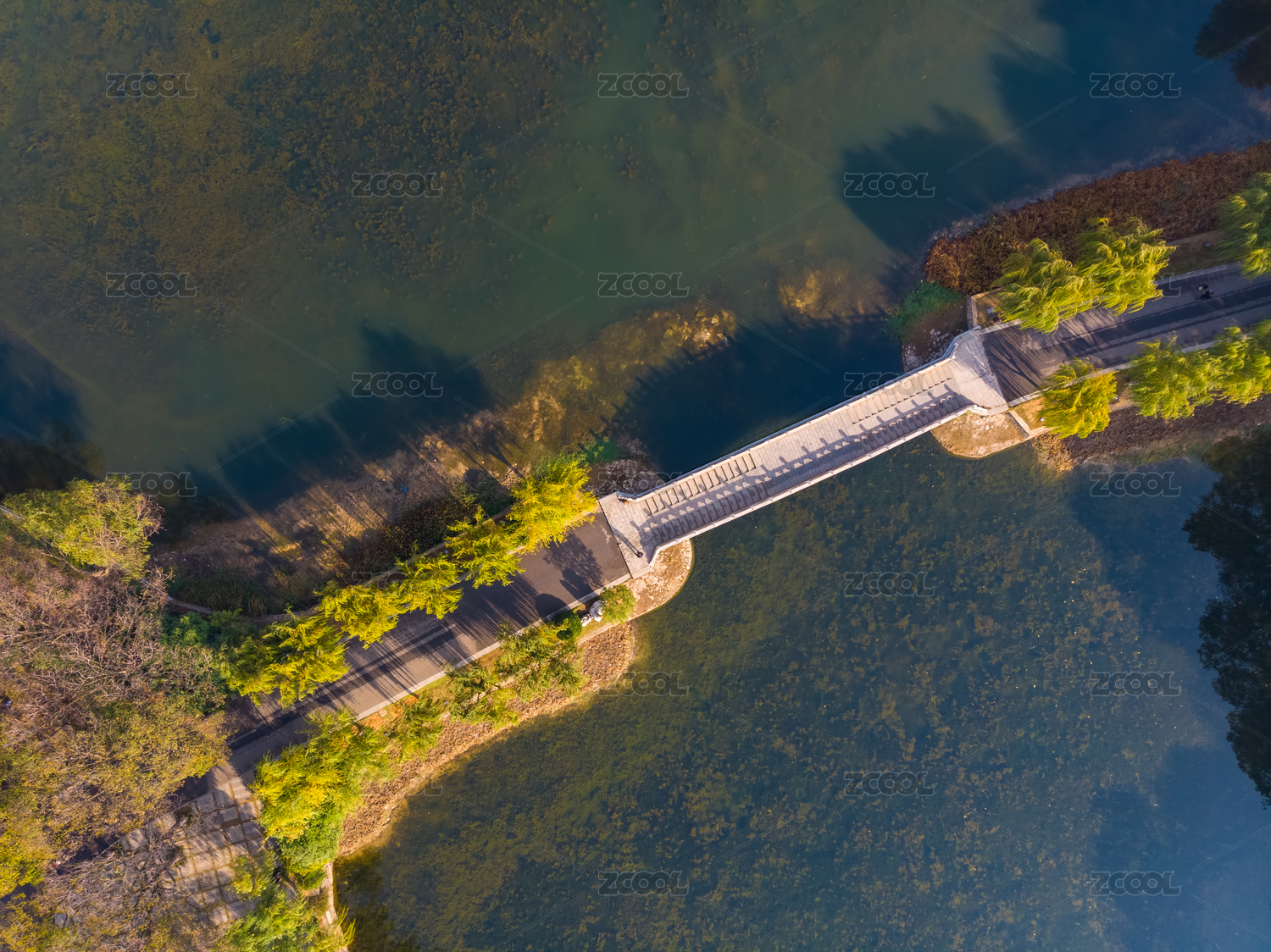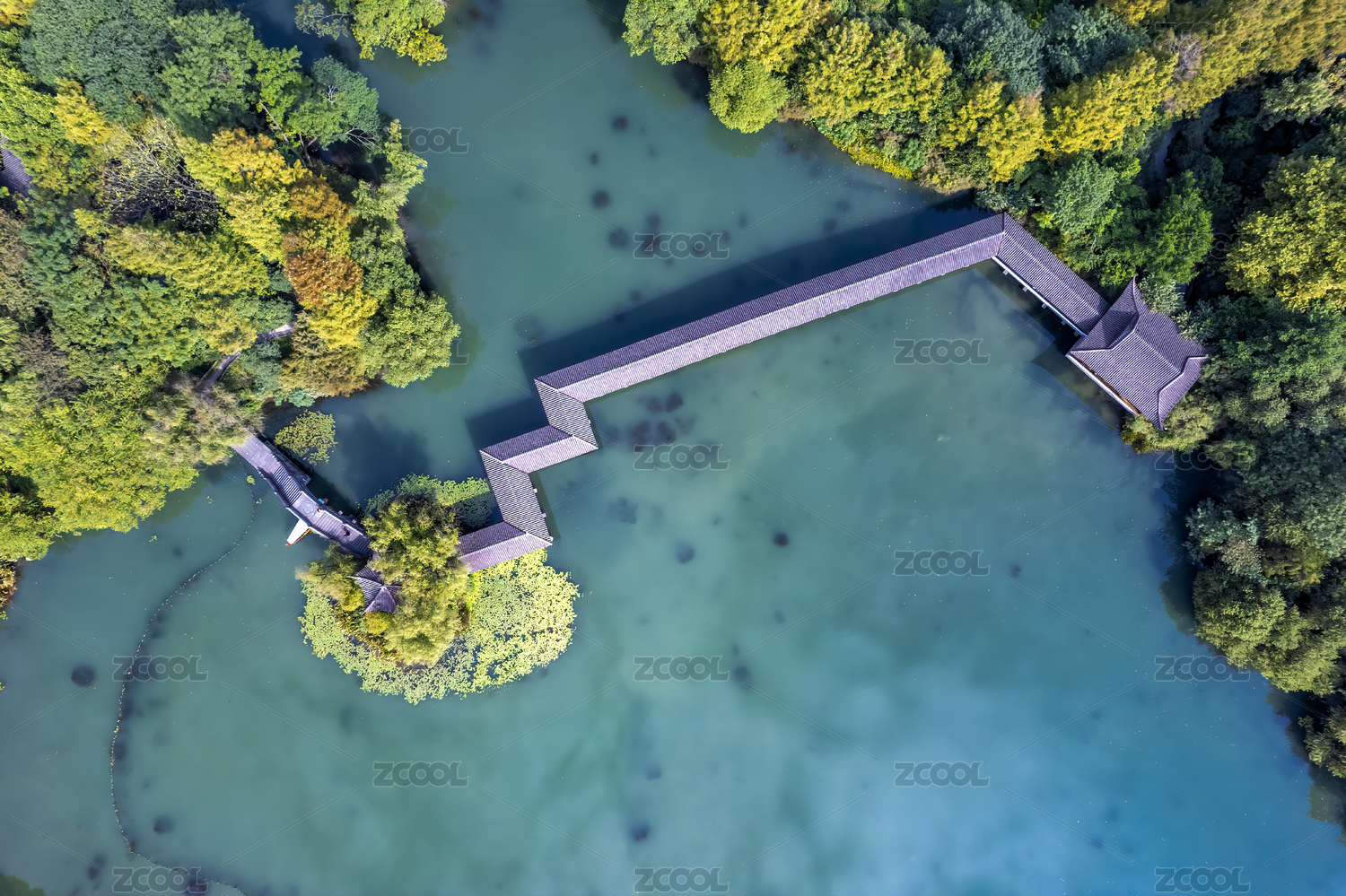 航拍杭州西湖景区浴鹄湾 霁虹桥