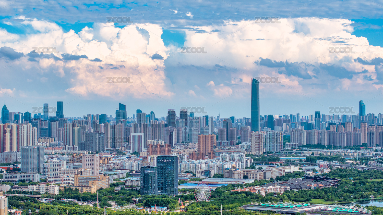 江苏省南京市紫金山乌云密布主城区高楼建筑