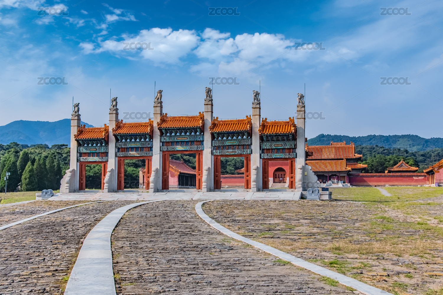 中国,河北省,遵化市,清东陵,景区,景陵小牌楼,皇家园林,琉璃瓦,楼阁,殿宇