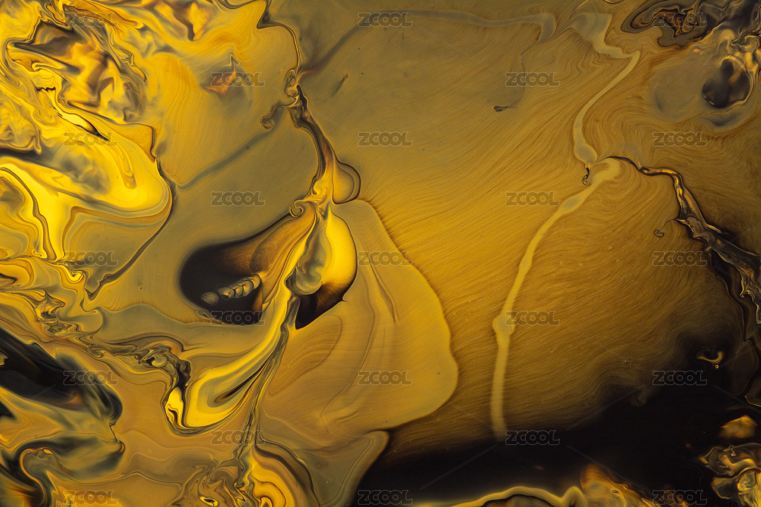 黑黄混合颜料流体艺术,抽象的彩色背景墙纸纹理。