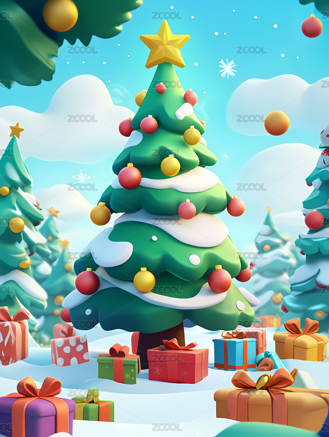 圣诞树梦幻风圣诞场景
