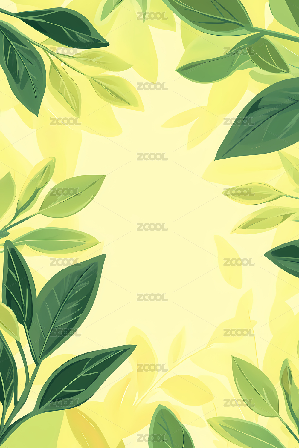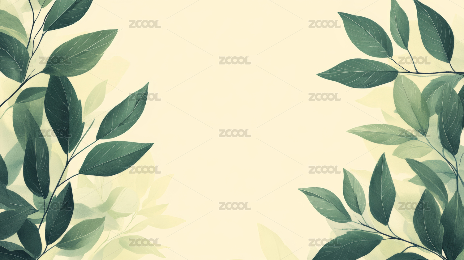 手绘图案清新背景水彩绿色叶子贺卡素材