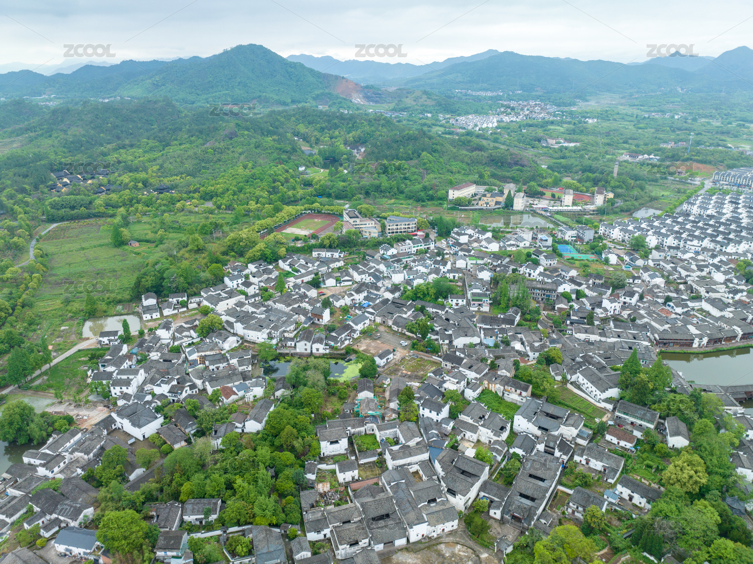 安徽宏村水墨江南古镇徽派建筑群航拍
