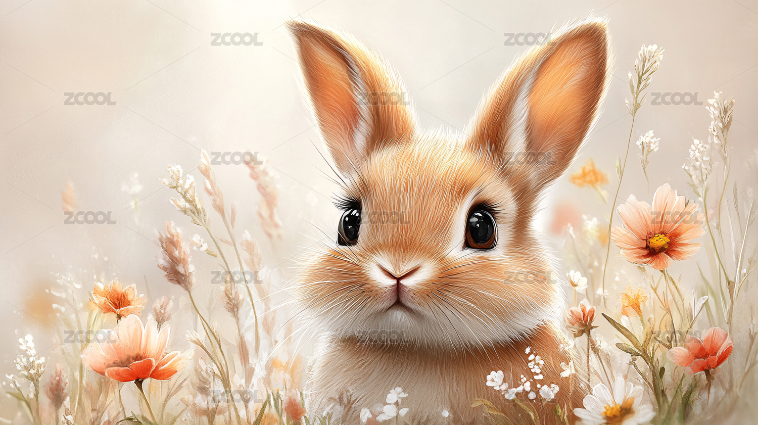 水墨,花丛,花朵,花园,玉兔,兔子,中式审美