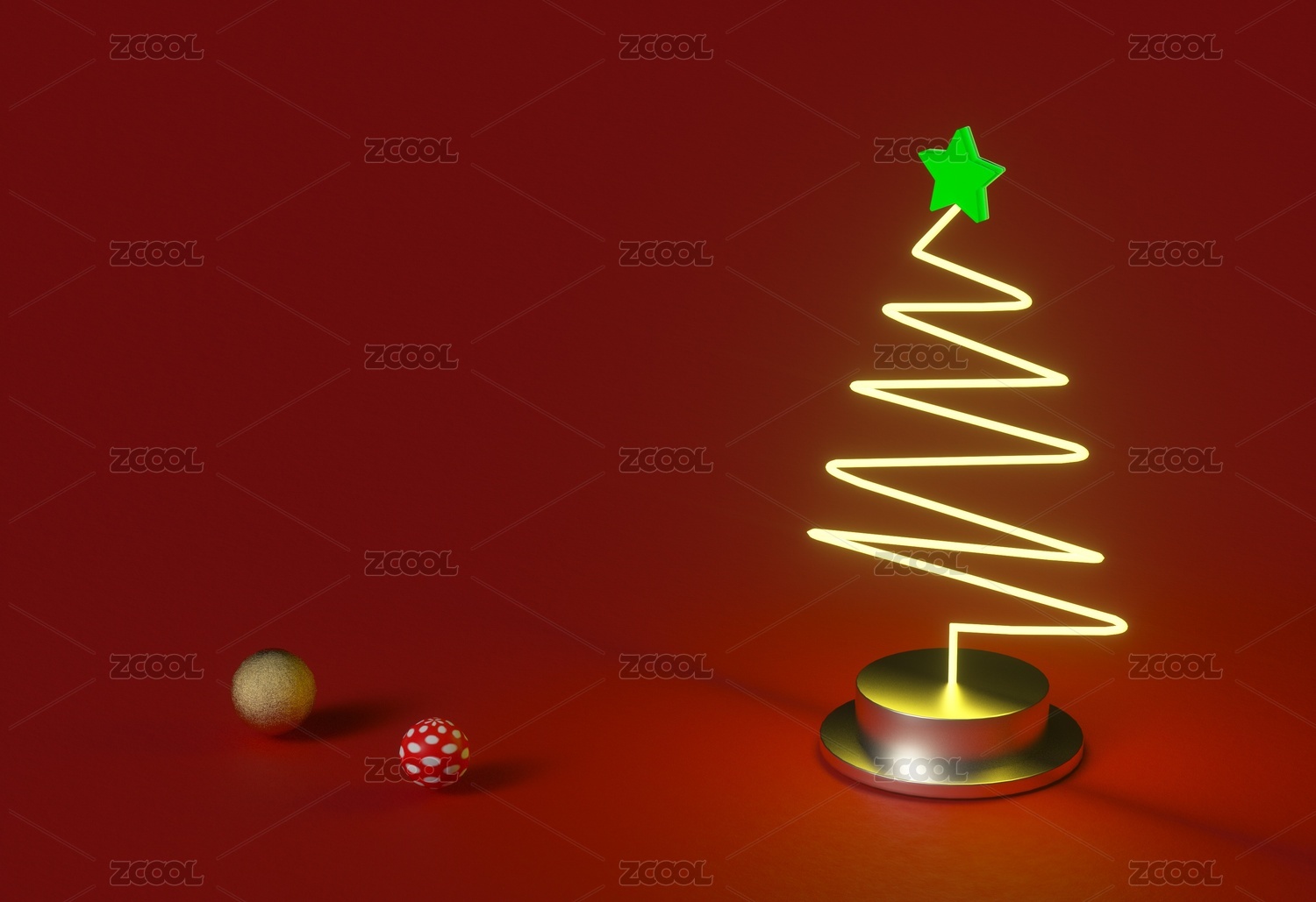 3D立体发光圣诞节圣诞树喜庆红色背景图