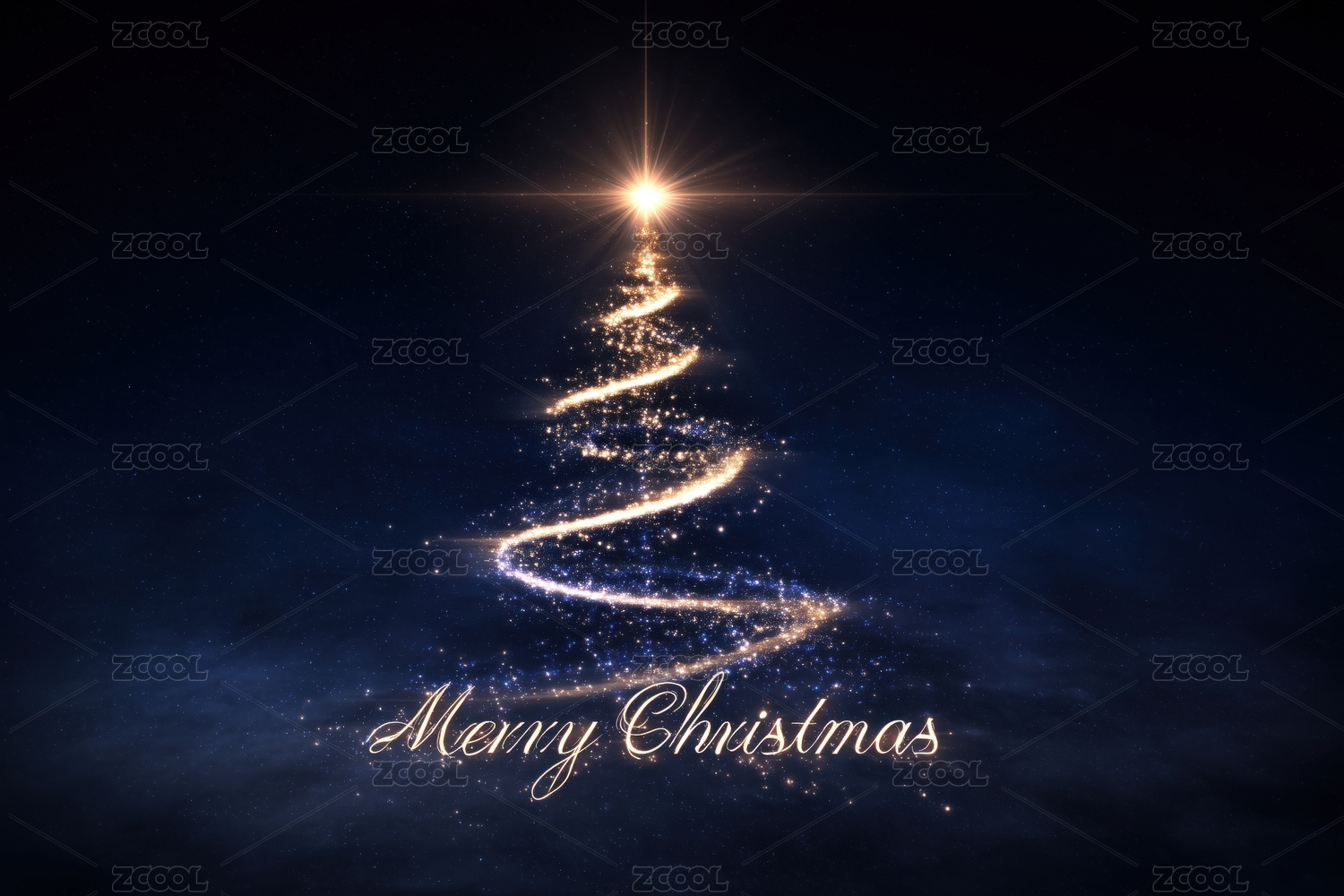 金色光线勾勒的圣诞树