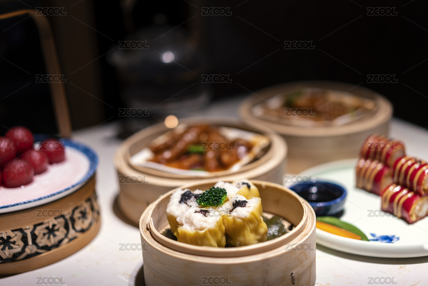 中国广东酒楼里美味的广式早茶点心蛋挞