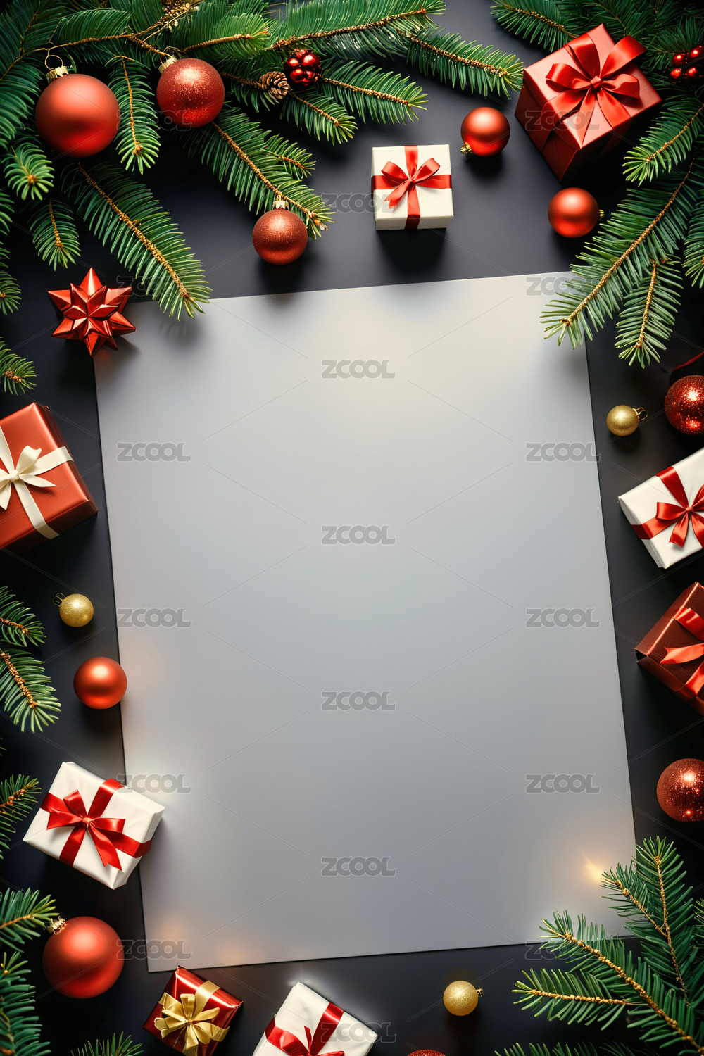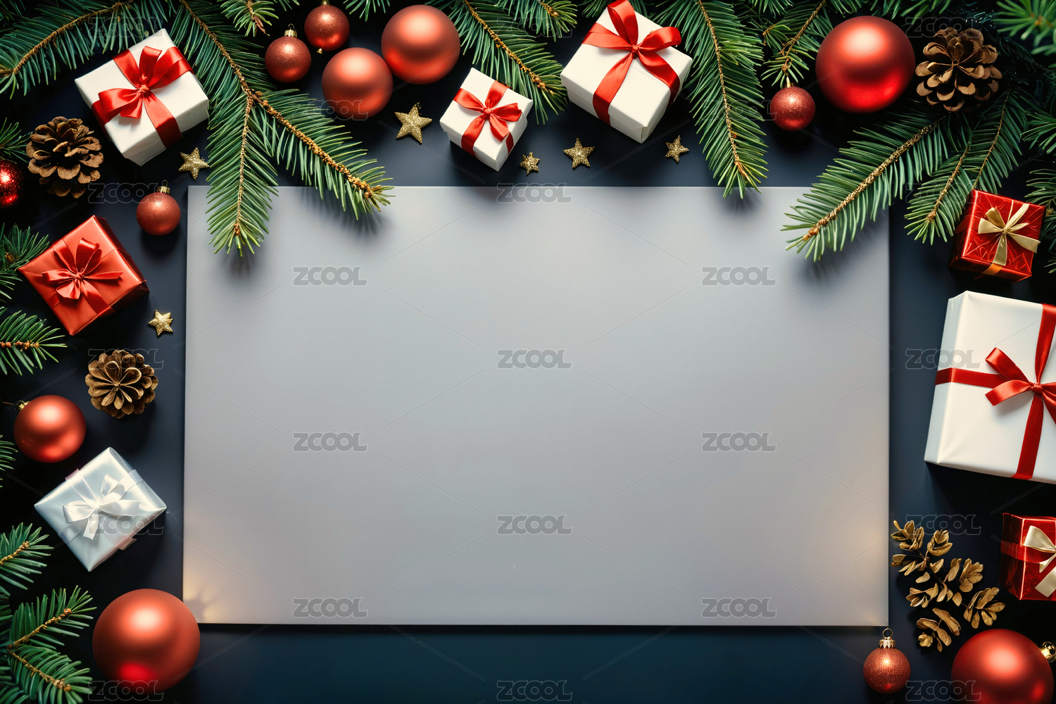 圣诞,松枝,红球,礼物,蝴蝶结,雪花,节日,庆祝,喜庆,红色