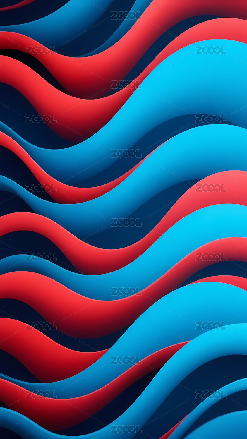 垂直彩色,具有 3D 抽象液体层、剪纸波