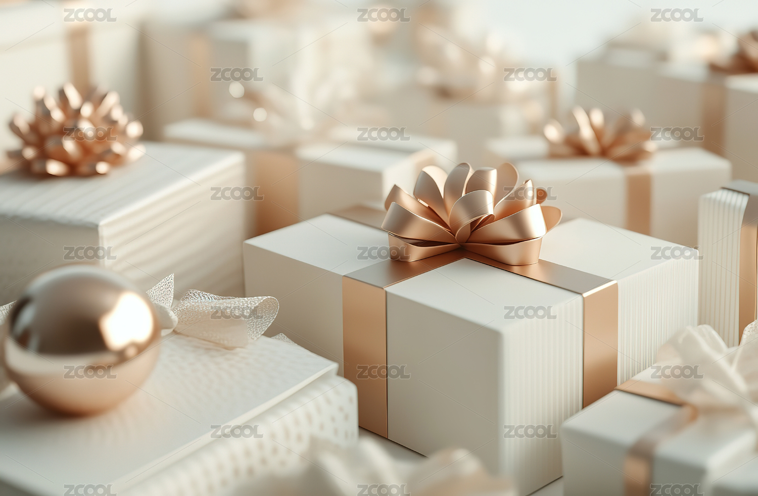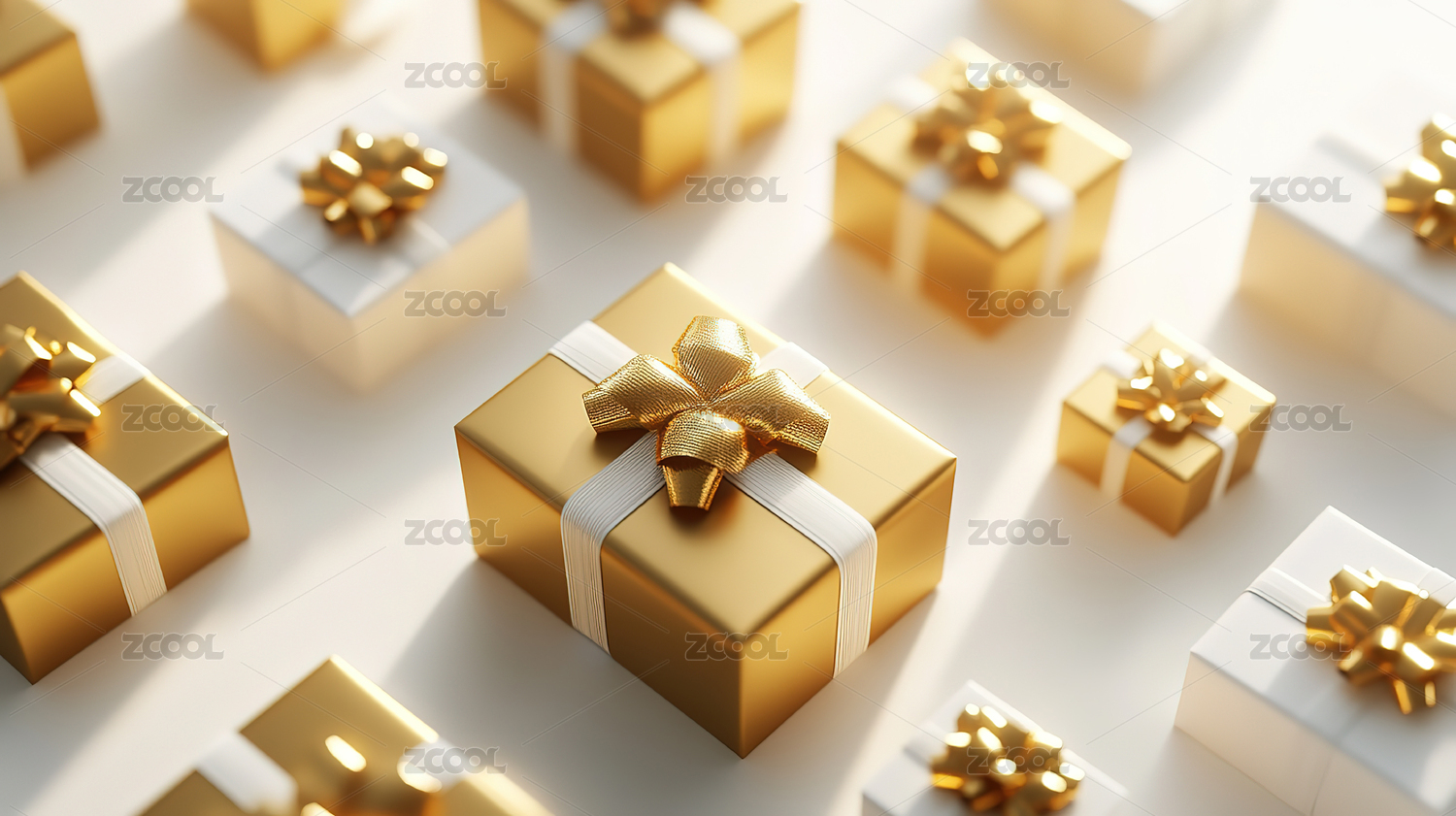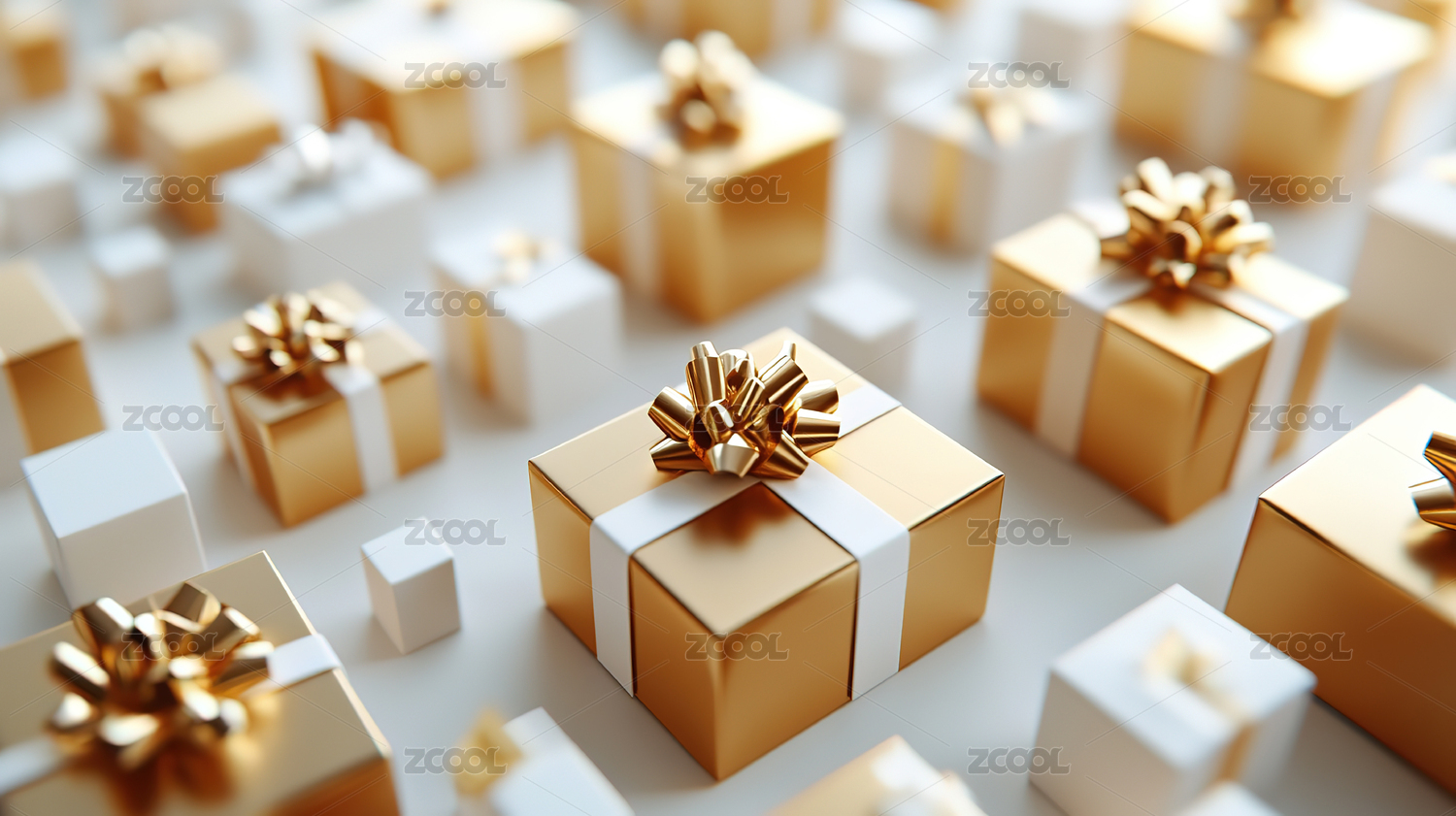金色礼物盒堆积如山的精美画面