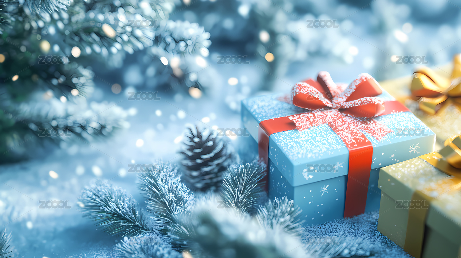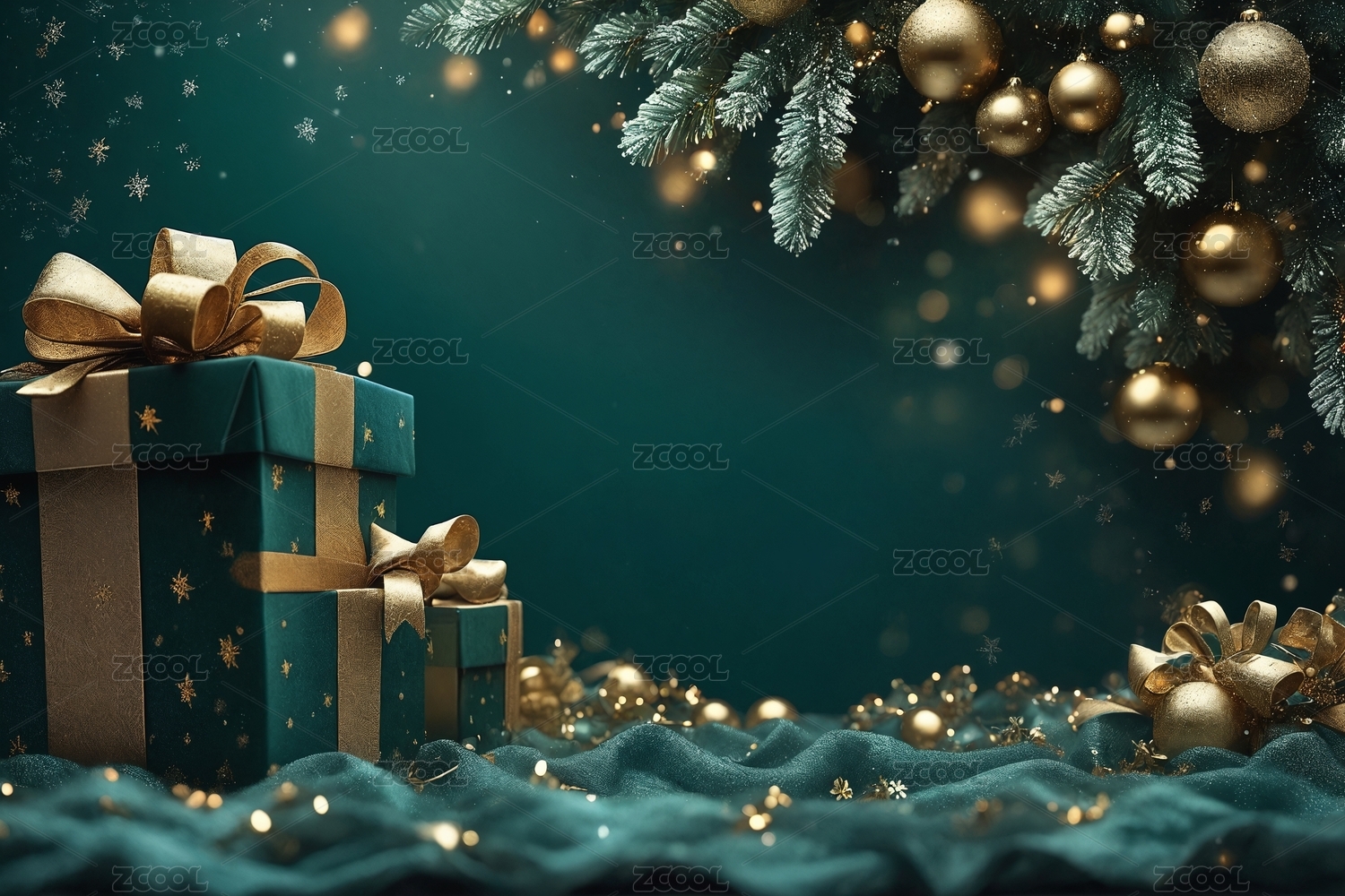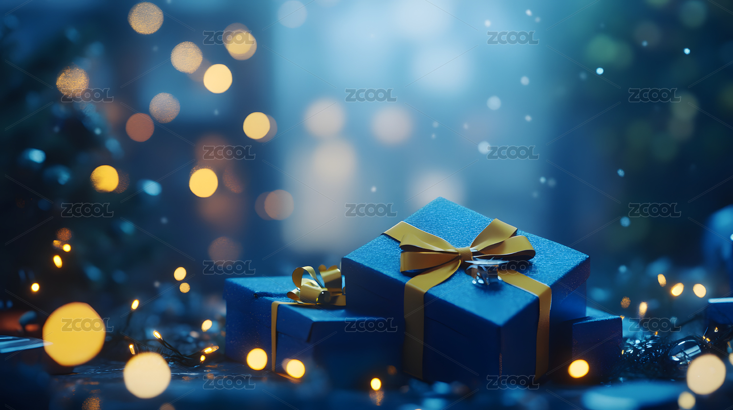 礼物盒,圣诞,节日,灯光,绿色,蓝色,金色,蝴蝶结,闪光,雪花