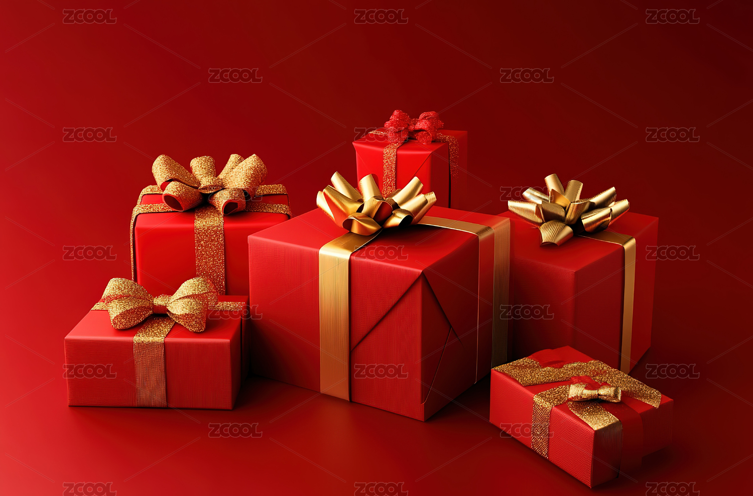 无人,礼物,盒子,庆祝,AI数字艺术,节日,红色,装饰,影棚拍摄,生日