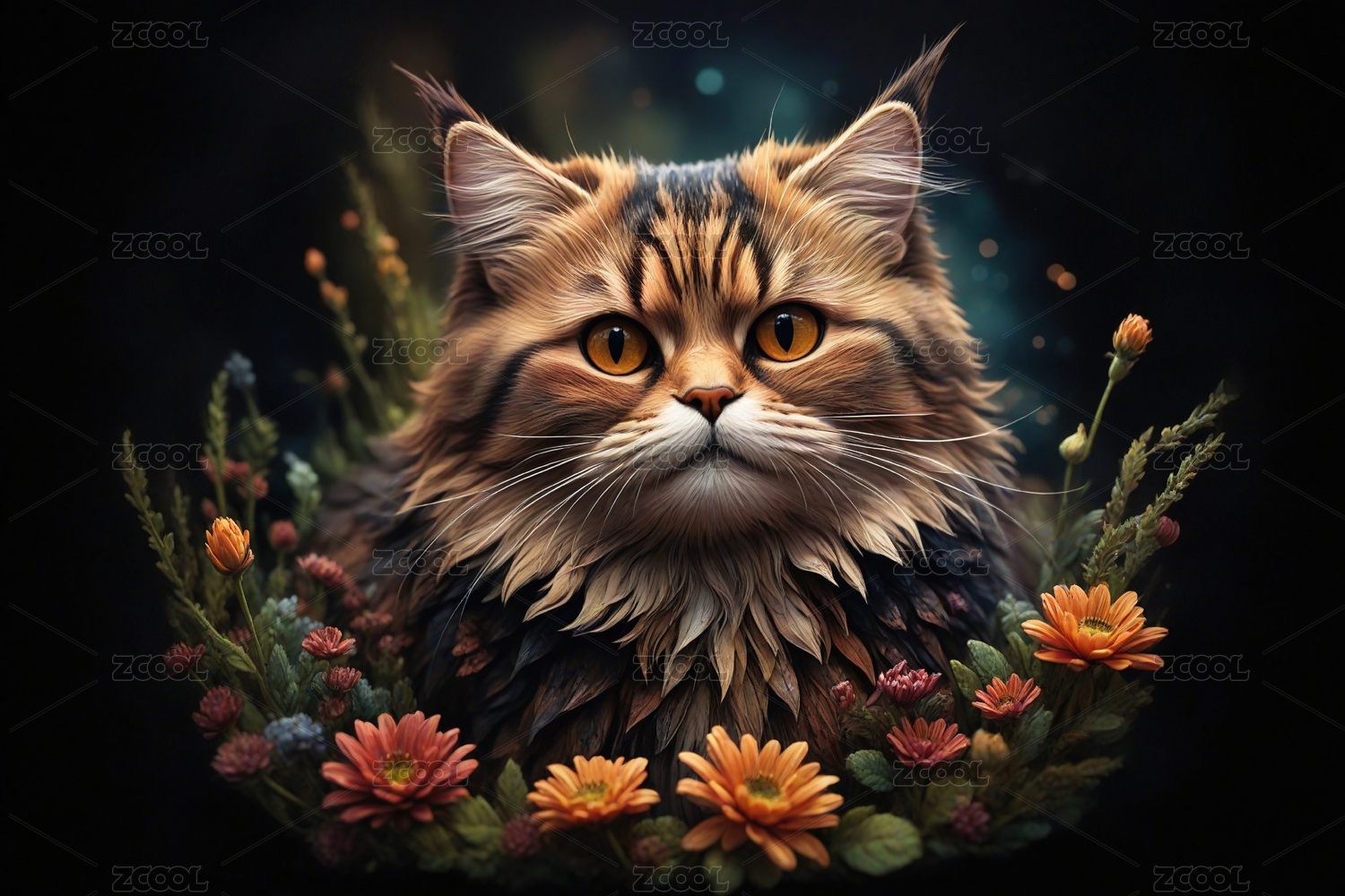 花丛中的猫主题