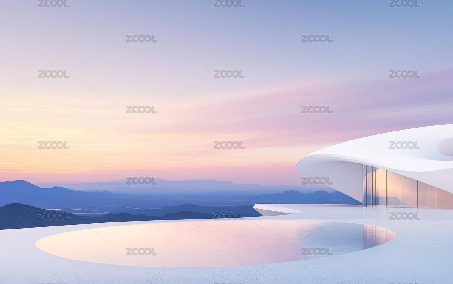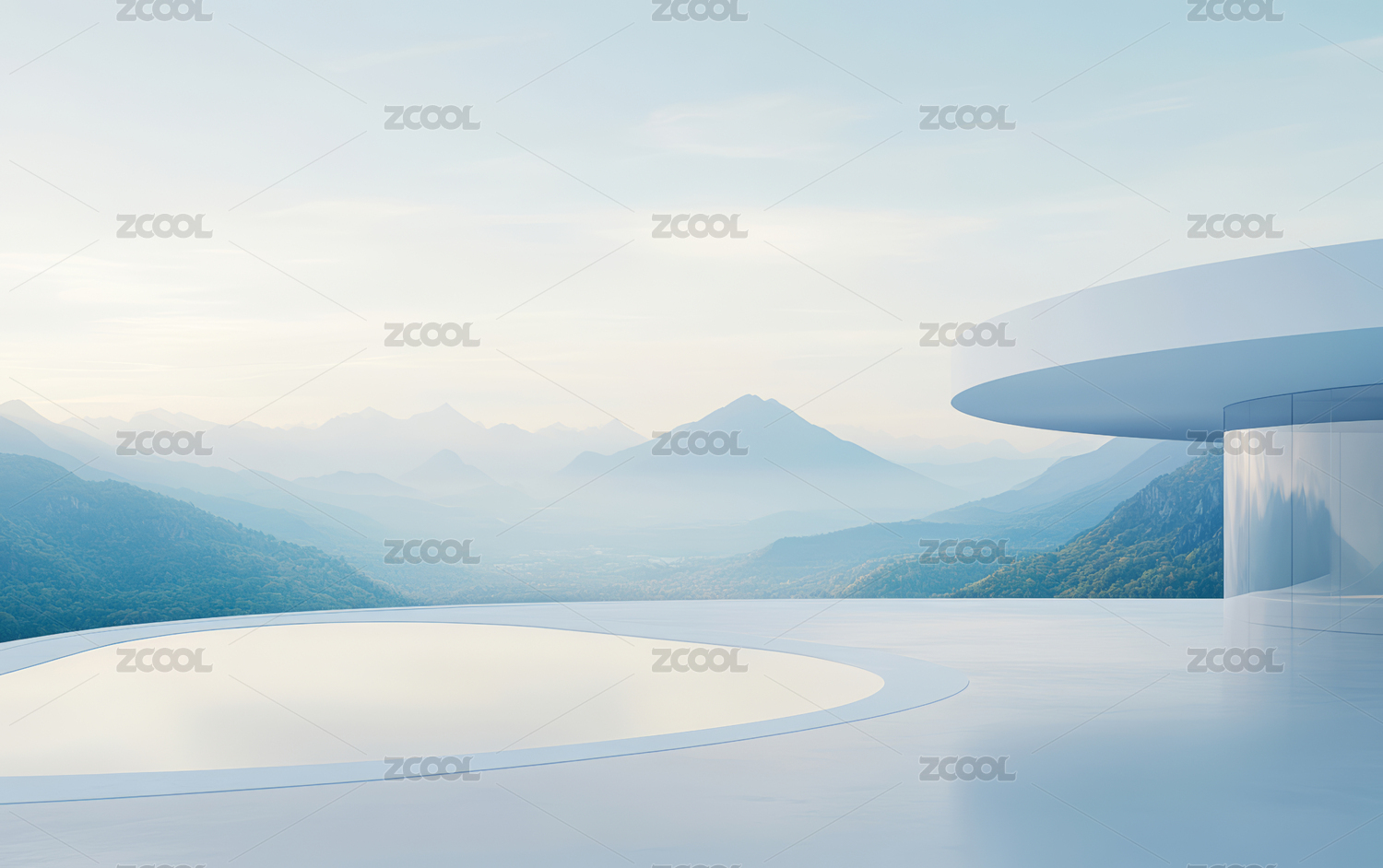 现代,建筑,平台,绿色,新能源,风景,自然,天空,山,森林