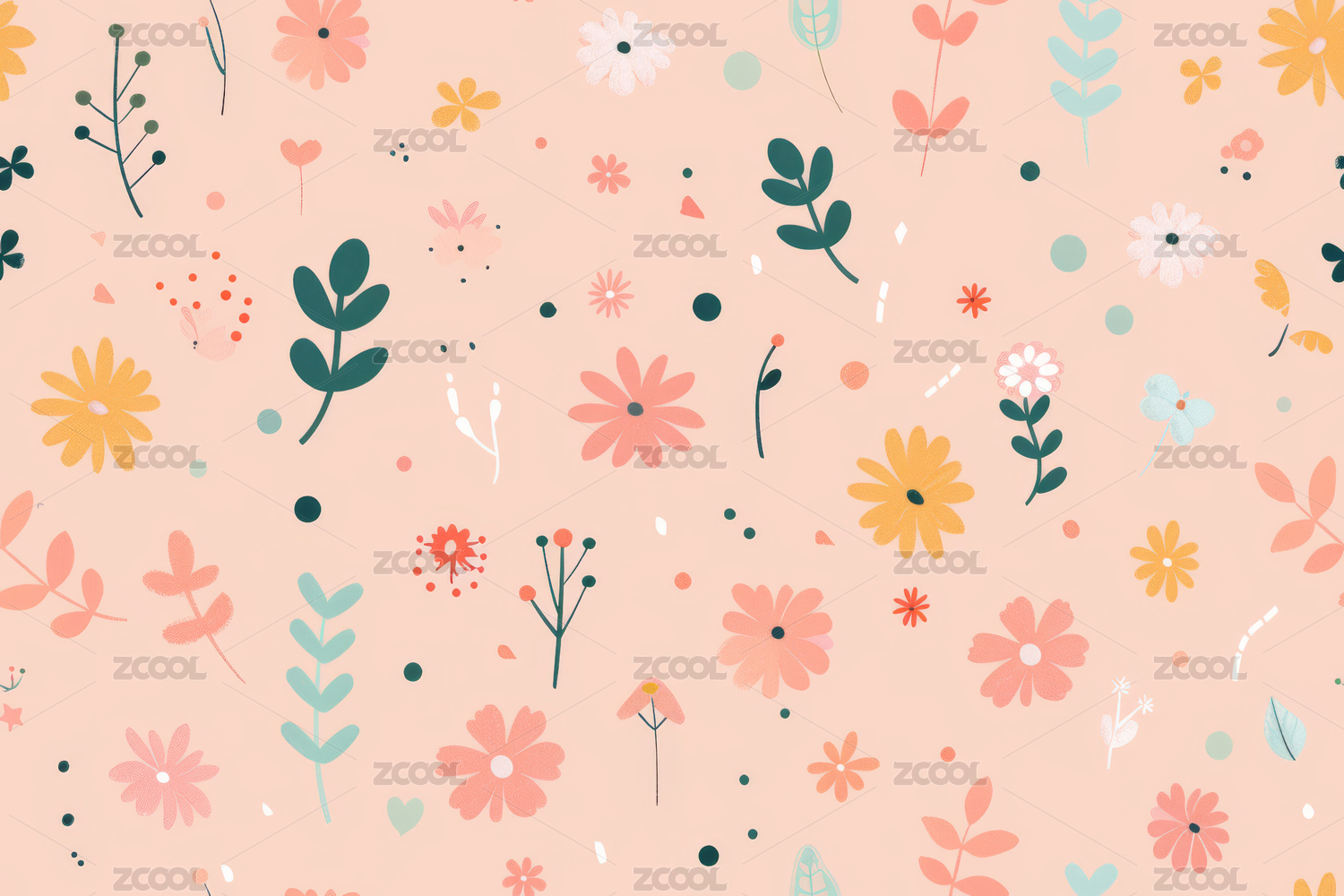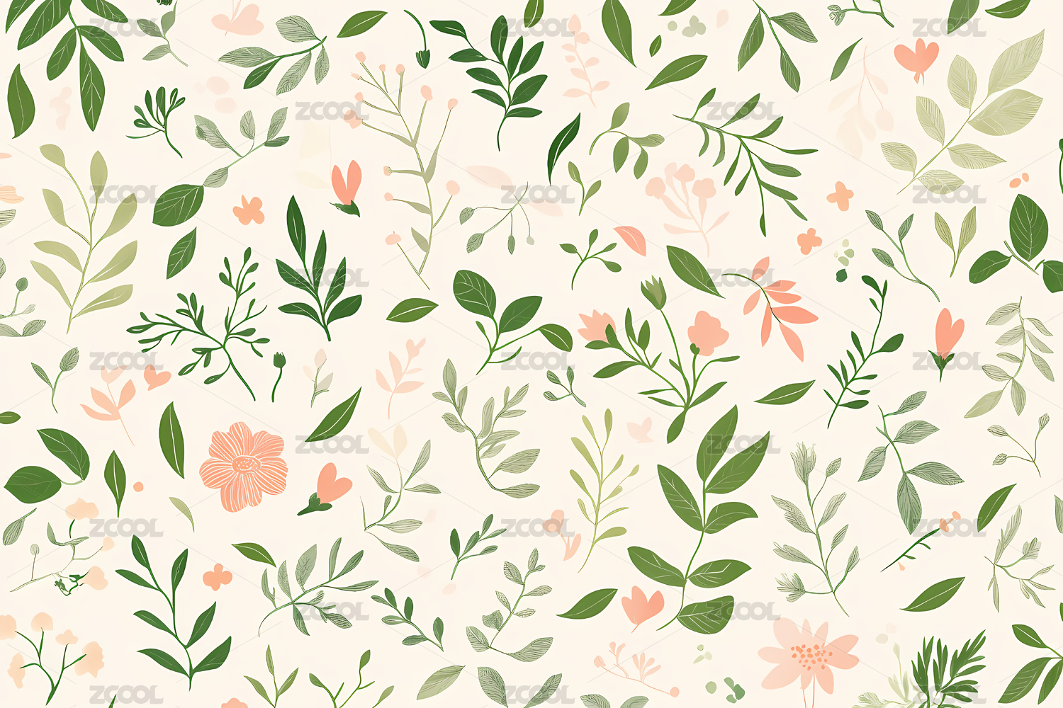 春天,春日,绿色,清新,插画,手绘,植物,春,平铺,纹理
