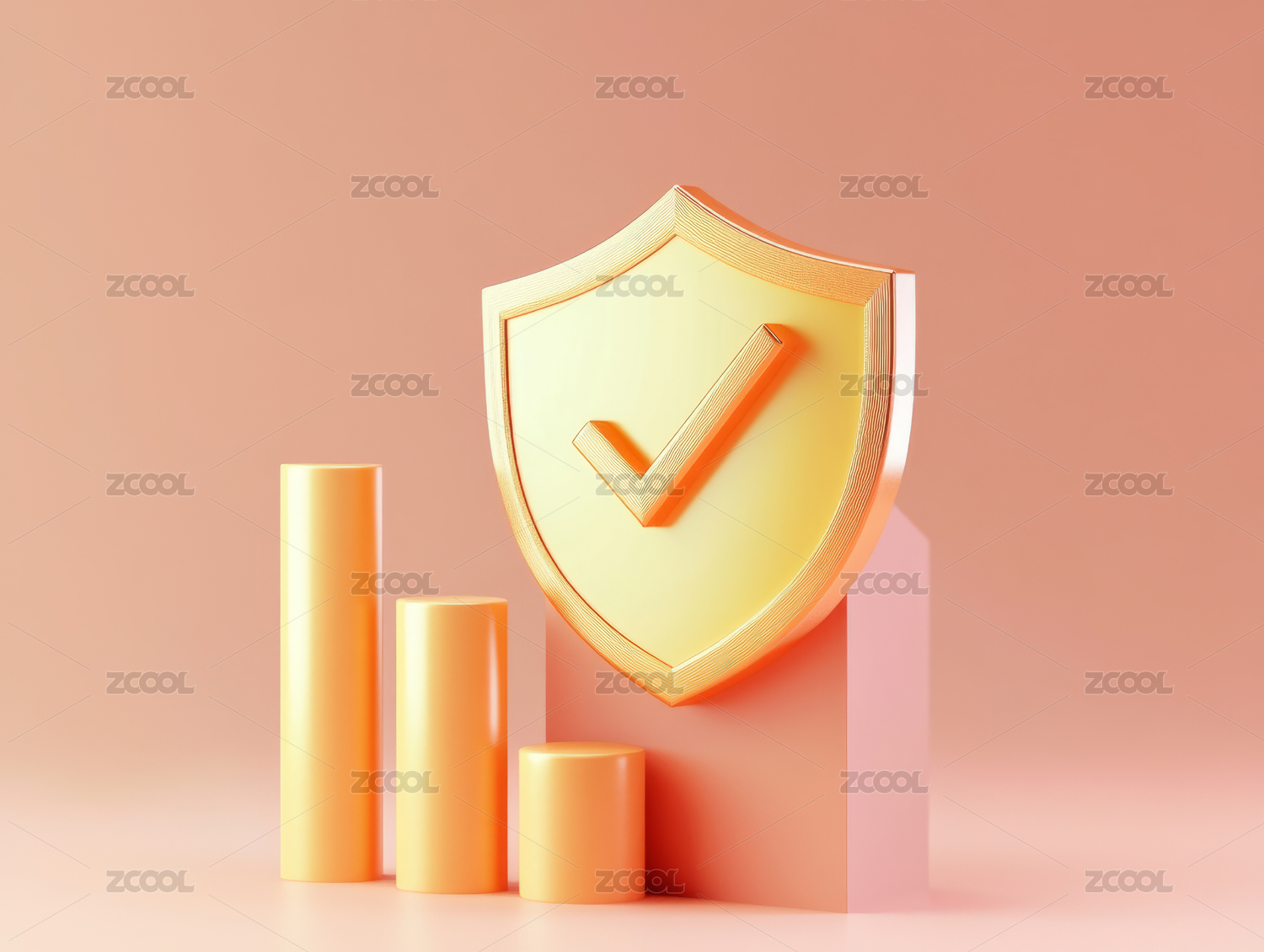 3D安全防护盾牌柱状图底座