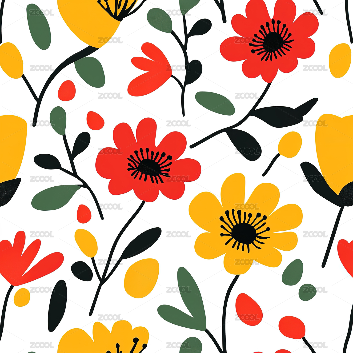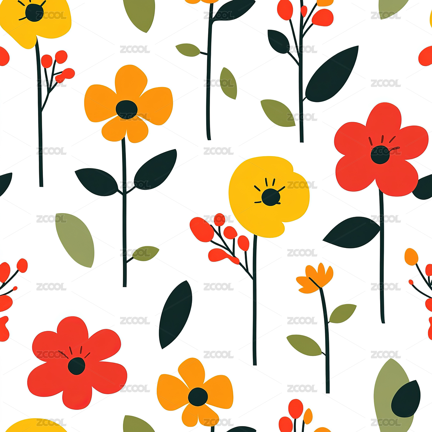 花朵植物四方连续纹样