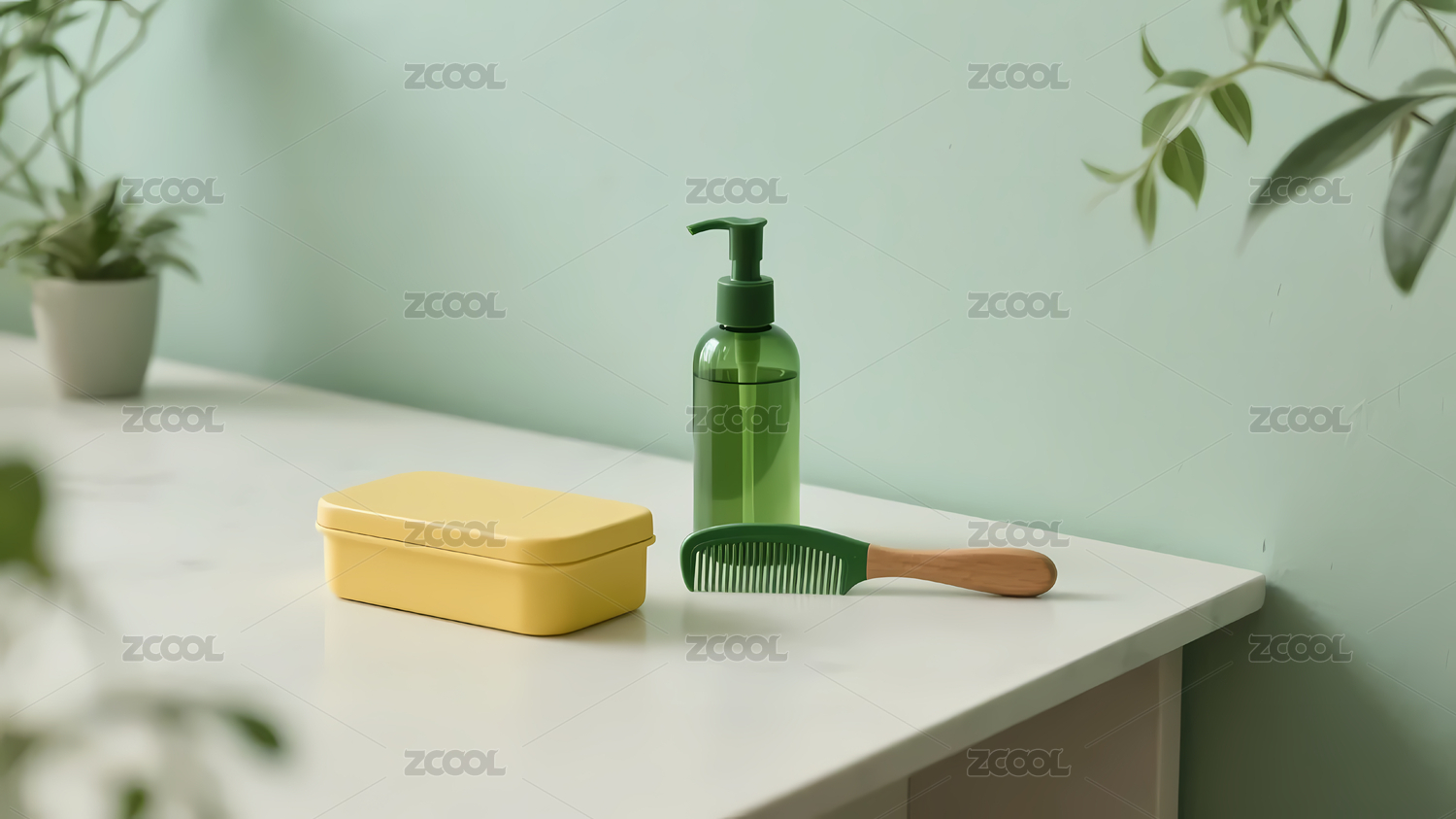 绿色梳子瓶子盒子